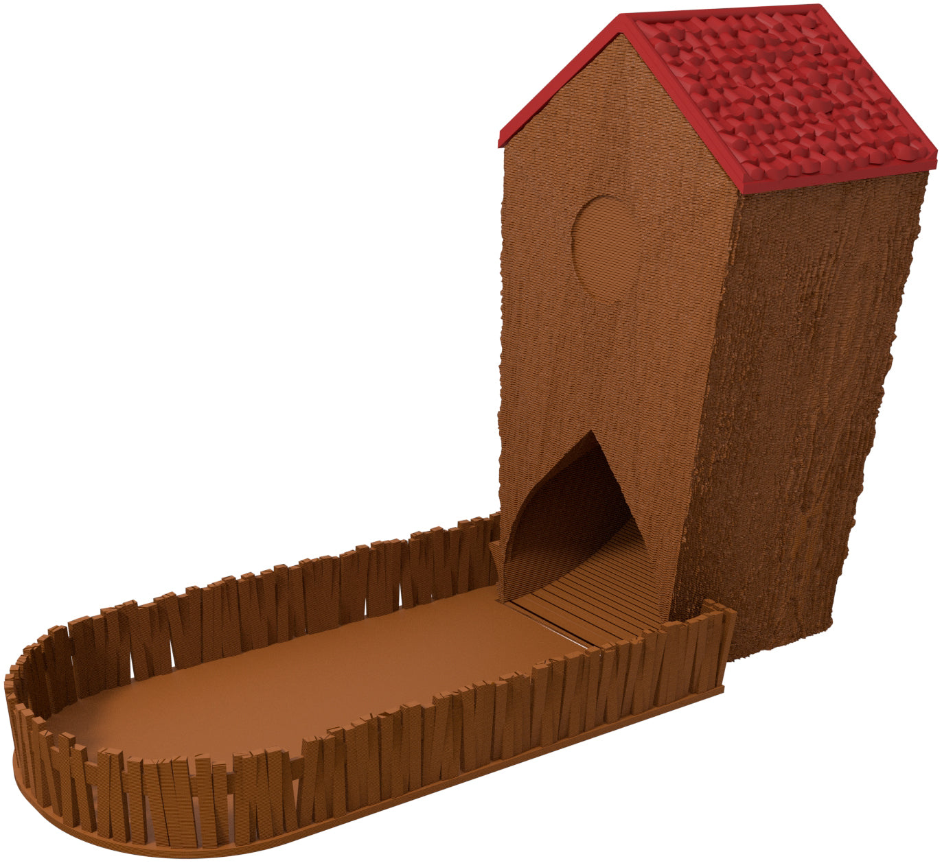 - Peut être rangé de manière peu encombrante. Placez la tour de dés sur le plateau/jardin de dés.