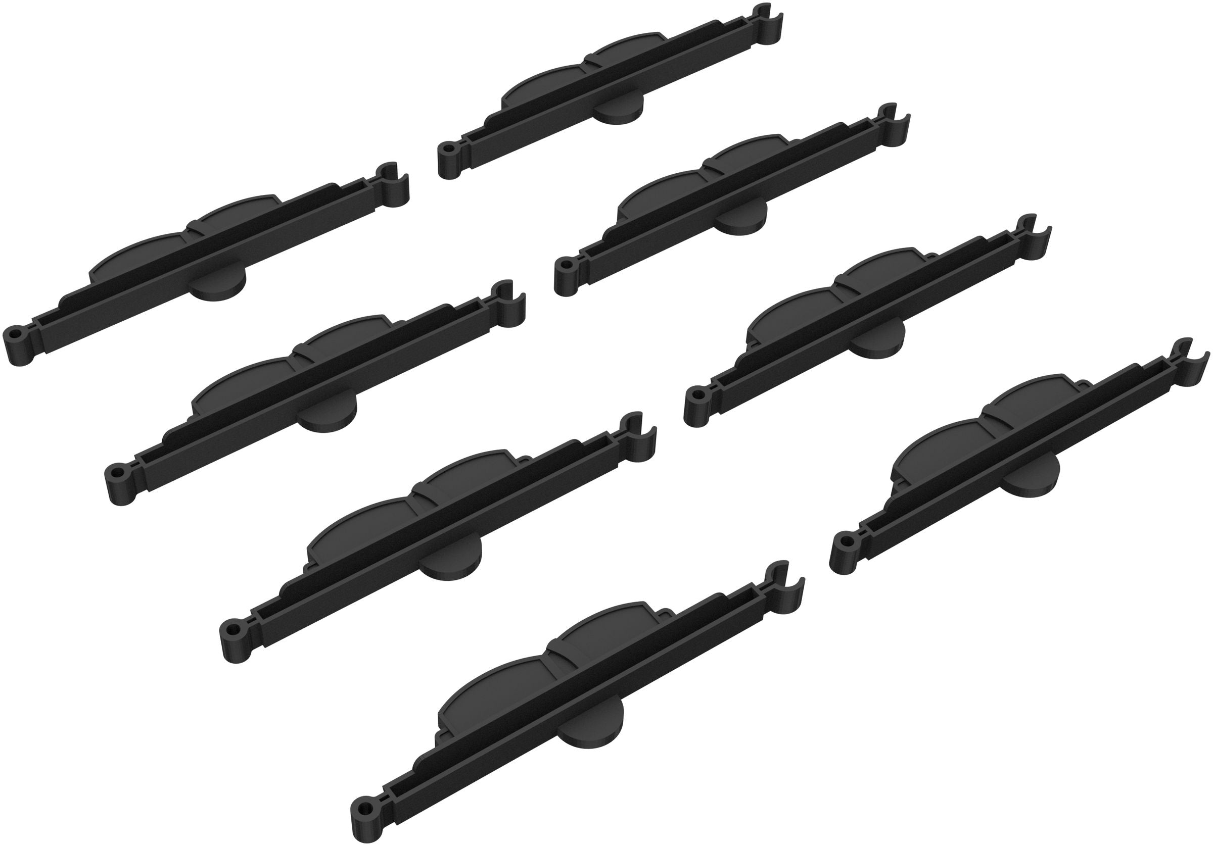 - Jeder der 8 Kartenständer hat die Abmessungen: 111 mm lang x 27 mm breit x 10 mm hoch