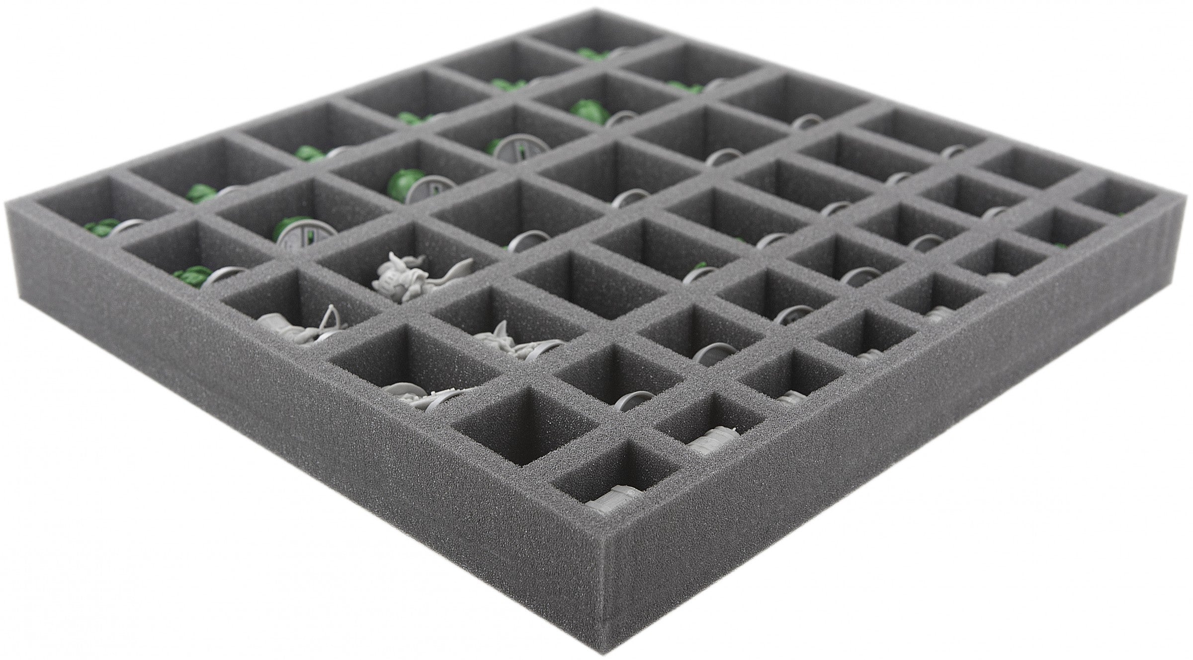 Speziell für die Super Dungeon Explore - Forgotten King Spiel-Box geschnittene Einlage. Die Schaumstoffeinlage eignet sich zum Nachrüsten in vielen original Brettspiele-Boxen. Die 42 unterschiedlich großen Fächer eigenen sich für alles erdenkliche Spielmaterial. So können Spielfiguren, Marker und Würfel übersichtlich aufbewahrt werden.