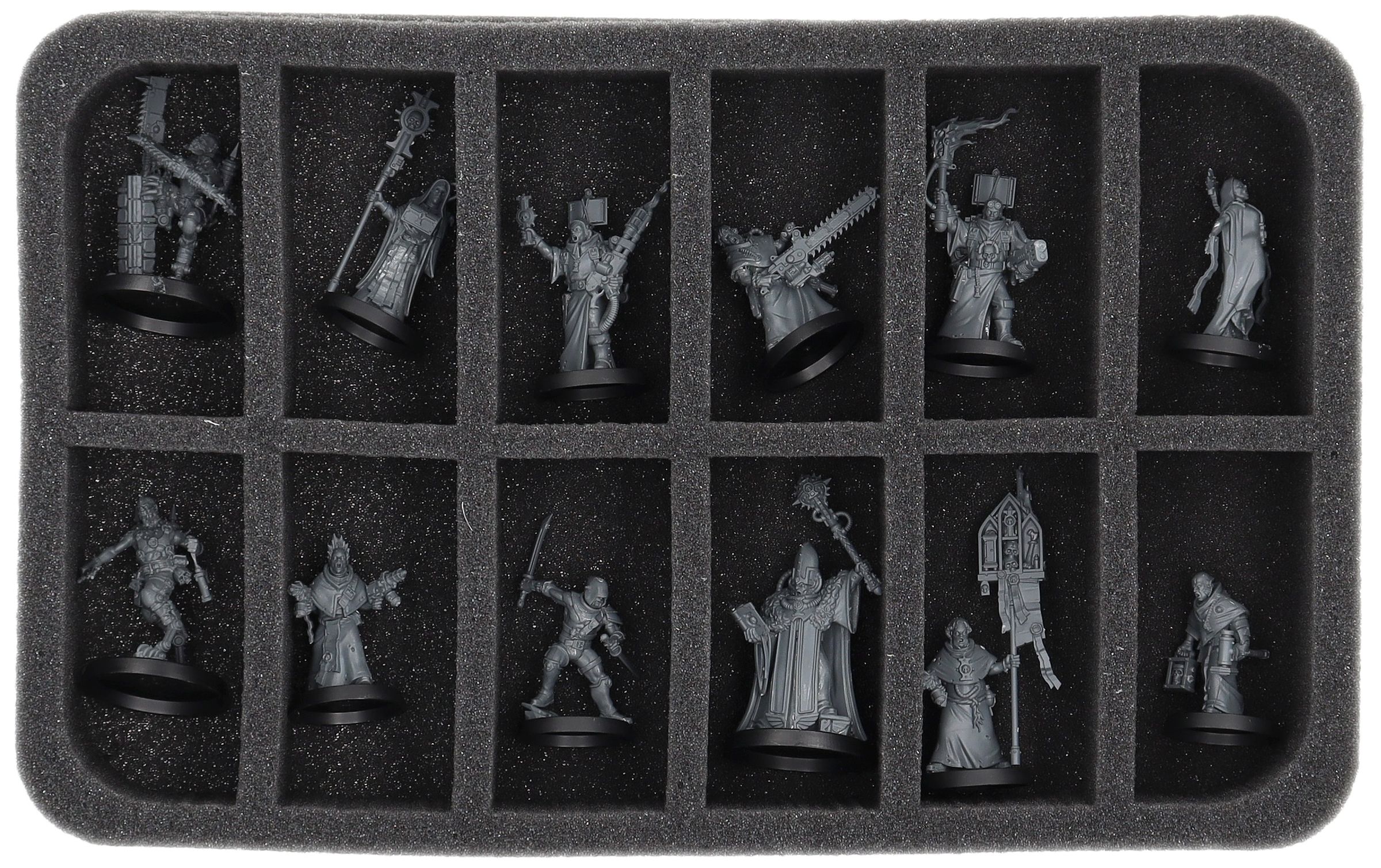 - 1 Half-Size Schaumstoffeinlage mit 12 Fächern für Kill Team: Sanktifikatoren (HSMECP045BO)