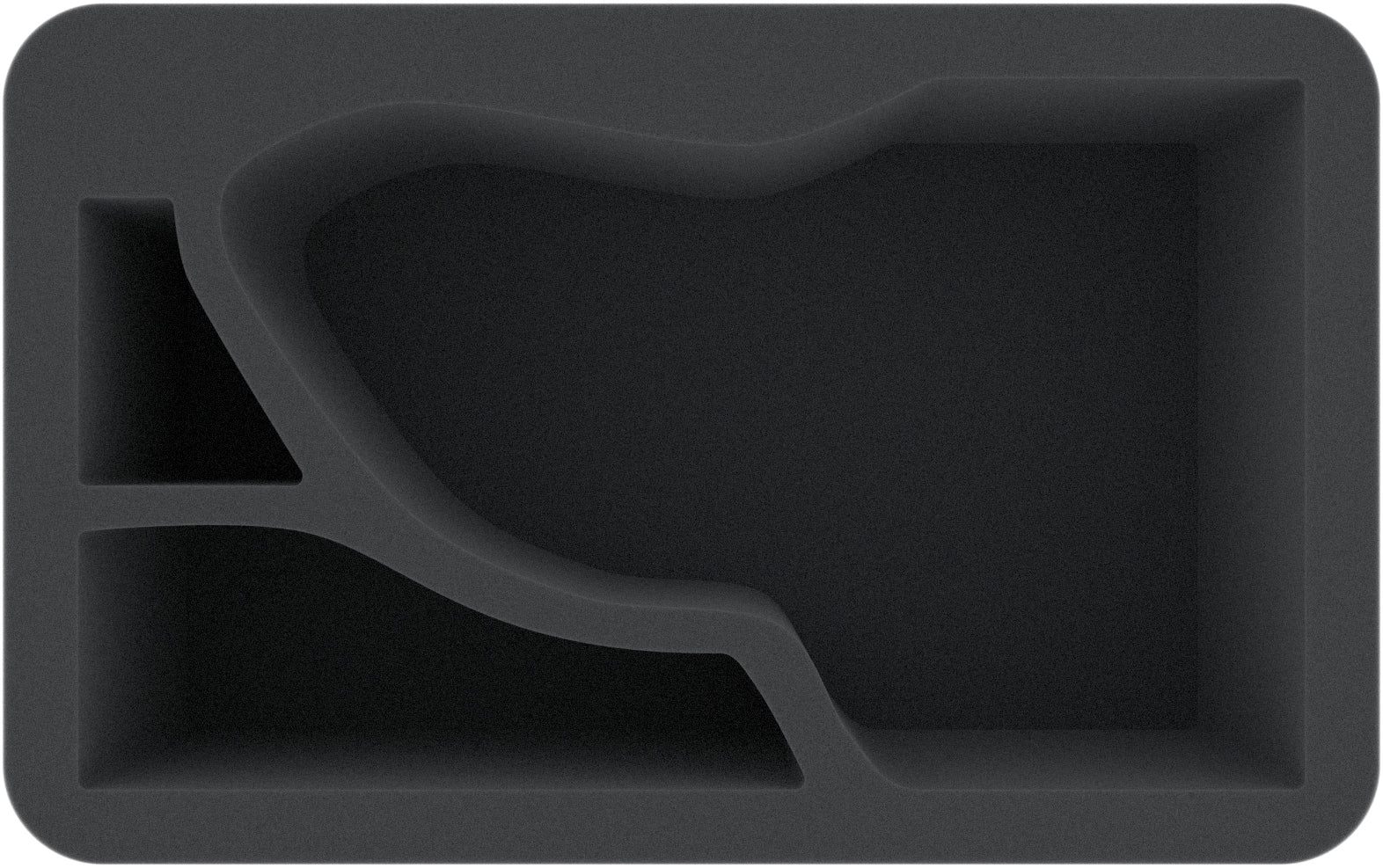Die Half-Size Schaumstoffeinlage hat die Abmessungen: 275 mm x 172 mm x 110 mm Gesamthöhe (100 mm Nutzungshöhe + 10 mm Schaumstoffboden).