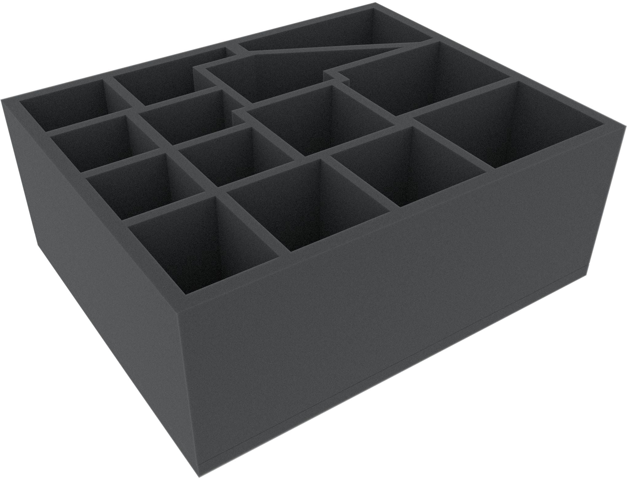 Diese 115 mm hohe Schaumstoffeinlage ist unterteilt in 14 Fächer. Sie eignet sich besonders gut zum sicheren Aufbewahren von Tabletop- und Brettspiel-Miniaturen und anderen empfindlichen Modellen und Kleinteilen.