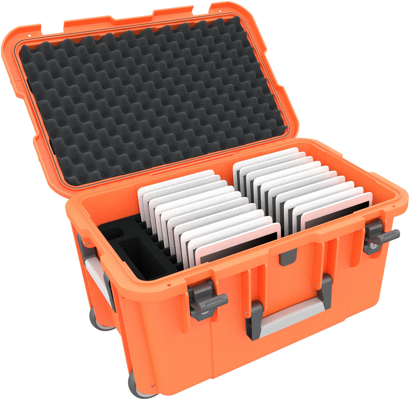 Koffer / Trolley für 20 Tablets in dicken Hüllen - Fächer 22 mm breit - kompatibel mit Apple iPad, Samsung Galaxy Tab A oder Microsoft Surface Go