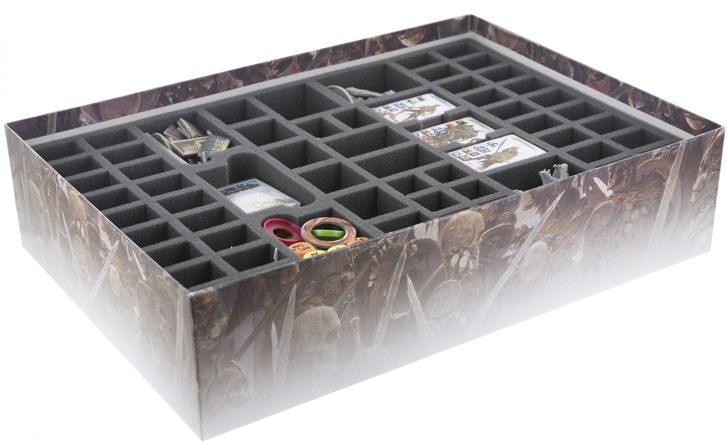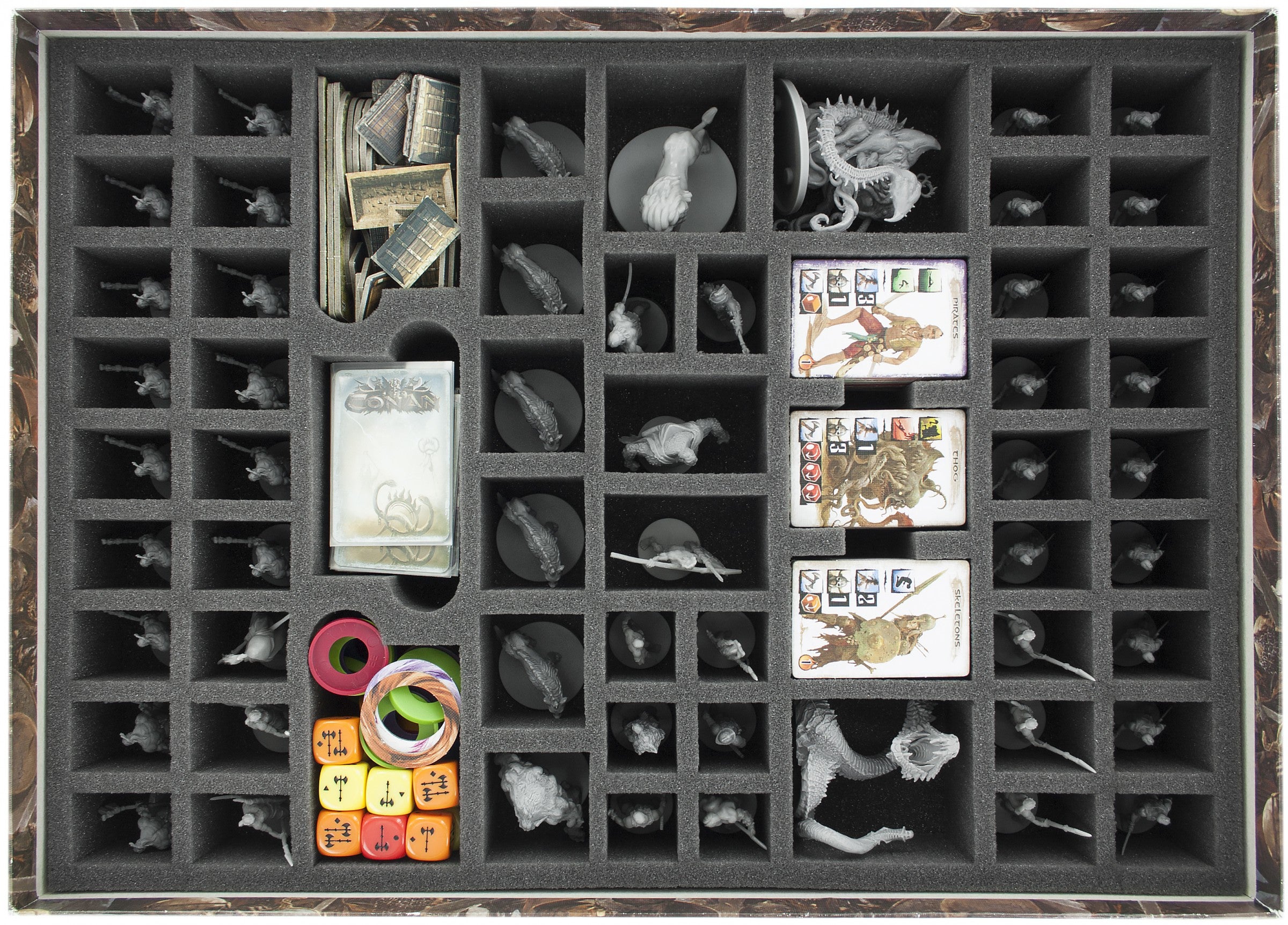 Speziell gestaltete Schaumstoffeinlagen für das Conan Brettspiel von Monolith Board Games LLC. Die Einlagen passen genau in die original Conan Brettspiellboxen. Alle Miniaturen, Karten in Hüllen und Token aus der originalen Brettspielbox finden sehr gut geschützt Platz in den Schaumstoffeinlagen. Zusätzlich bleiben über 30 Fächer für weitere Miniaturen frei, so können zum Beispiel bequem die Miniaturen aus dem Kings Pledge untergebracht werden. Für die Kickstarter "Stretch-Goals" empfehlen wir AY03Set.