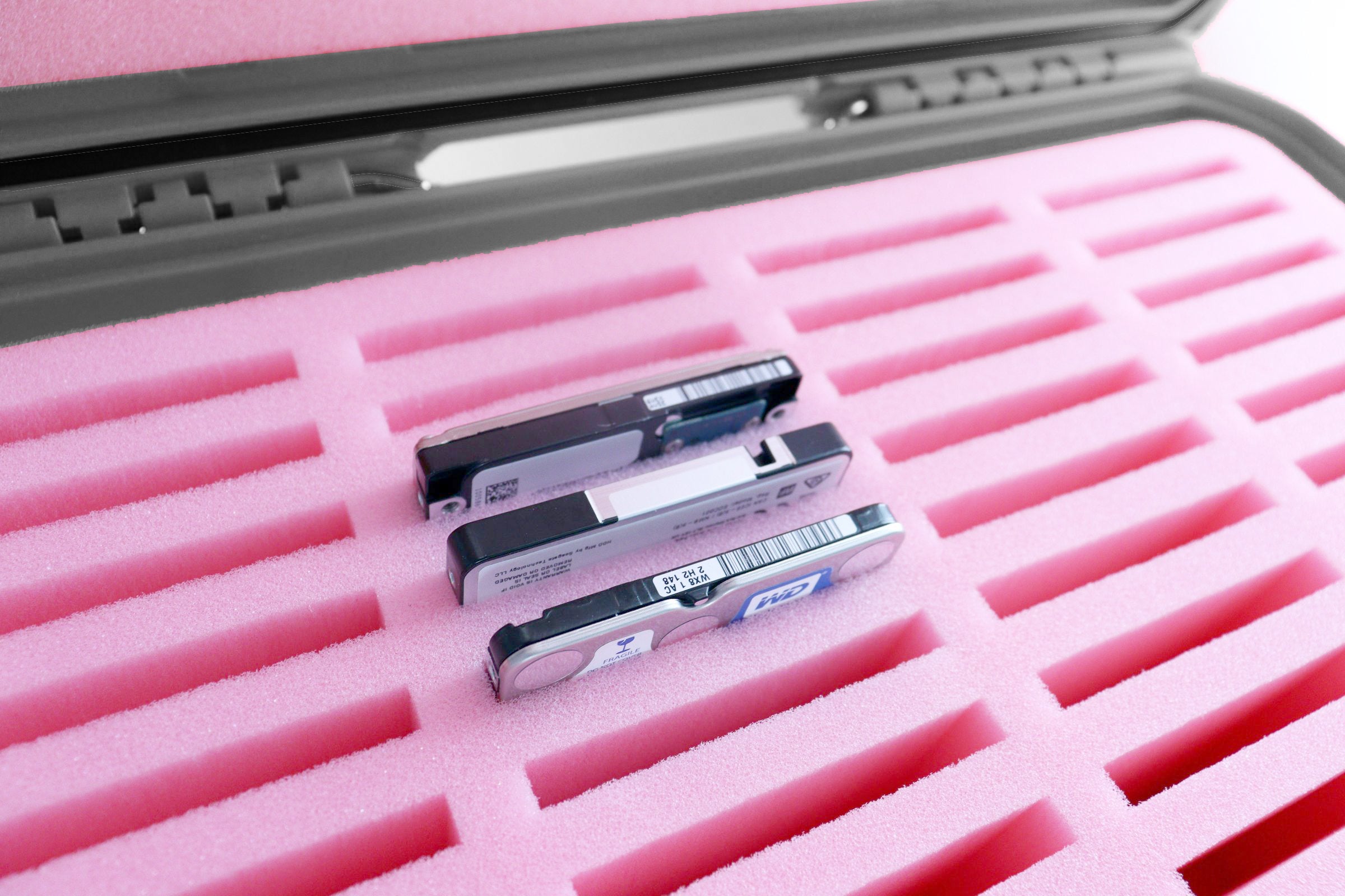 • 1 ESD-Schaumstoffeinlage mit 48 Ausstanzungen für Festplatten, elektronische Geräten und Bauteilen