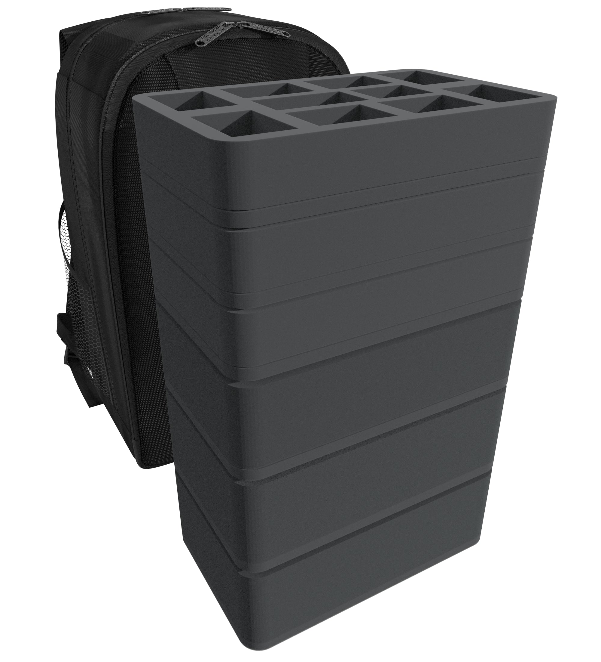 Dieser Rucksack mit passenden Feldherr-Schaumstoffeinlagen eignet sich hervorragend dafür, bis zu 40 Kriegermodelle und 1 Panzer deiner Aeldari Armee aufzubewahren und gut geschützt zu transportieren.