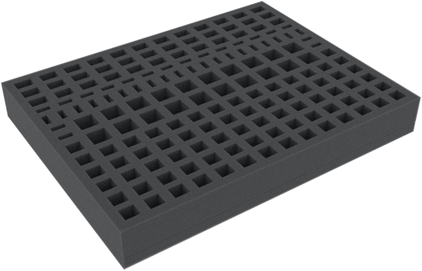 Ce plateau en mousse de 35 mm de haut est divisé en 166 compartiments. Il est particulièrement adapté au rangement en toute sécurité des figurines de table et de jeu de société et d'autres modèles et petites pièces délicates.