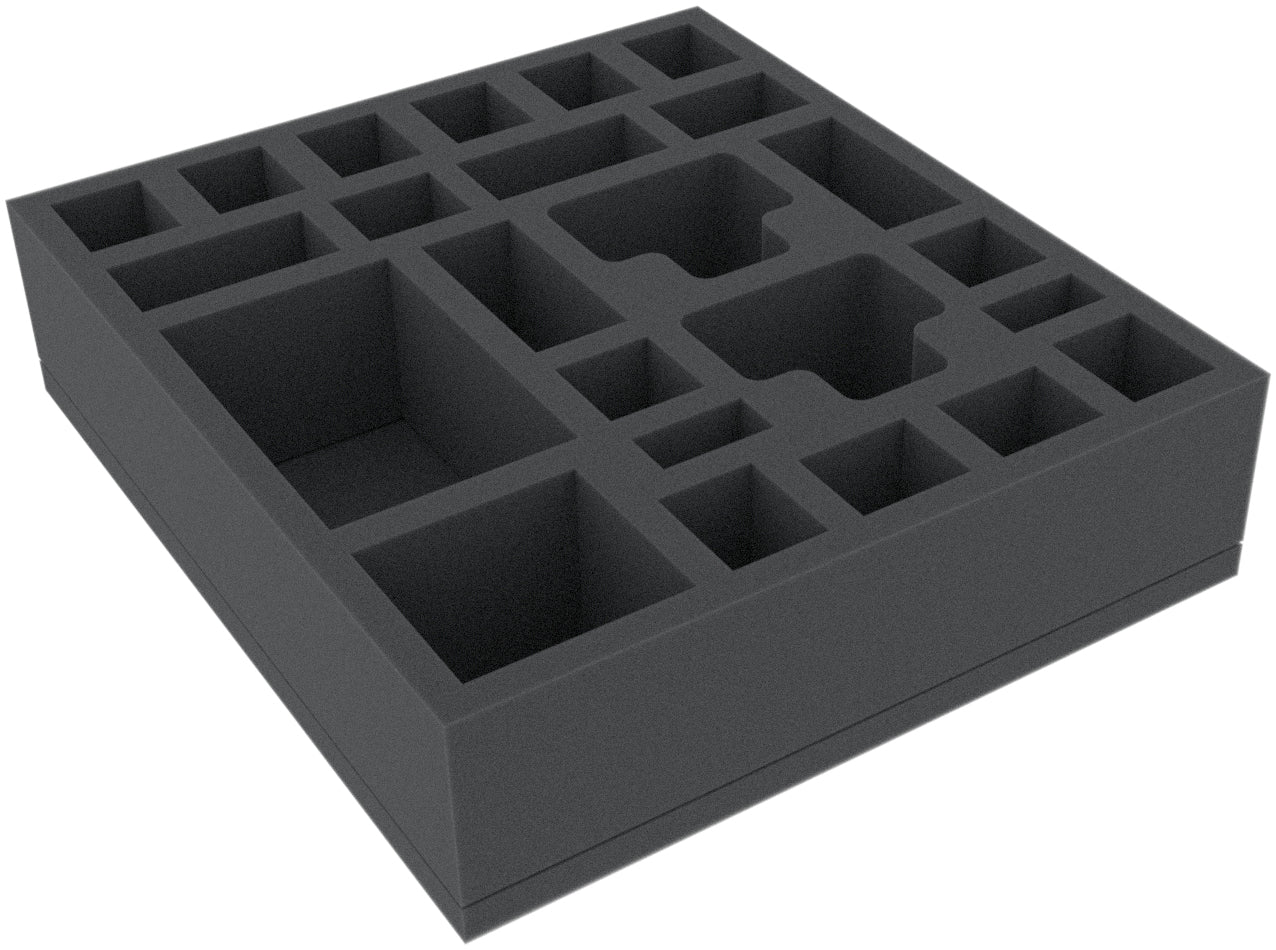 Ce plateau en mousse de 60 mm de haut est divisé en 24 compartiments. Il est particulièrement adapté au rangement sécurisé des figurines de jeux de table et de société, ainsi que d'autres modèles et petites pièces fragiles.