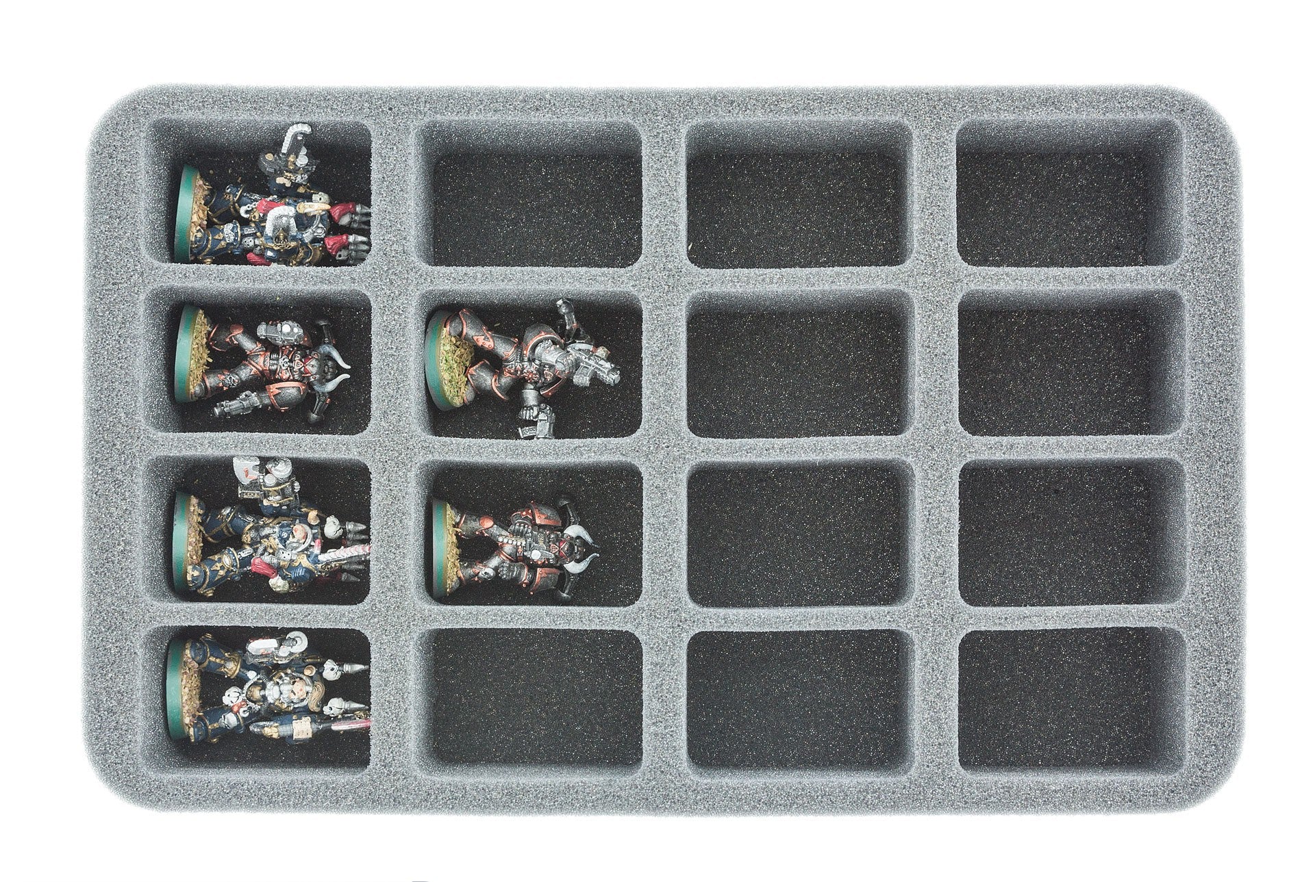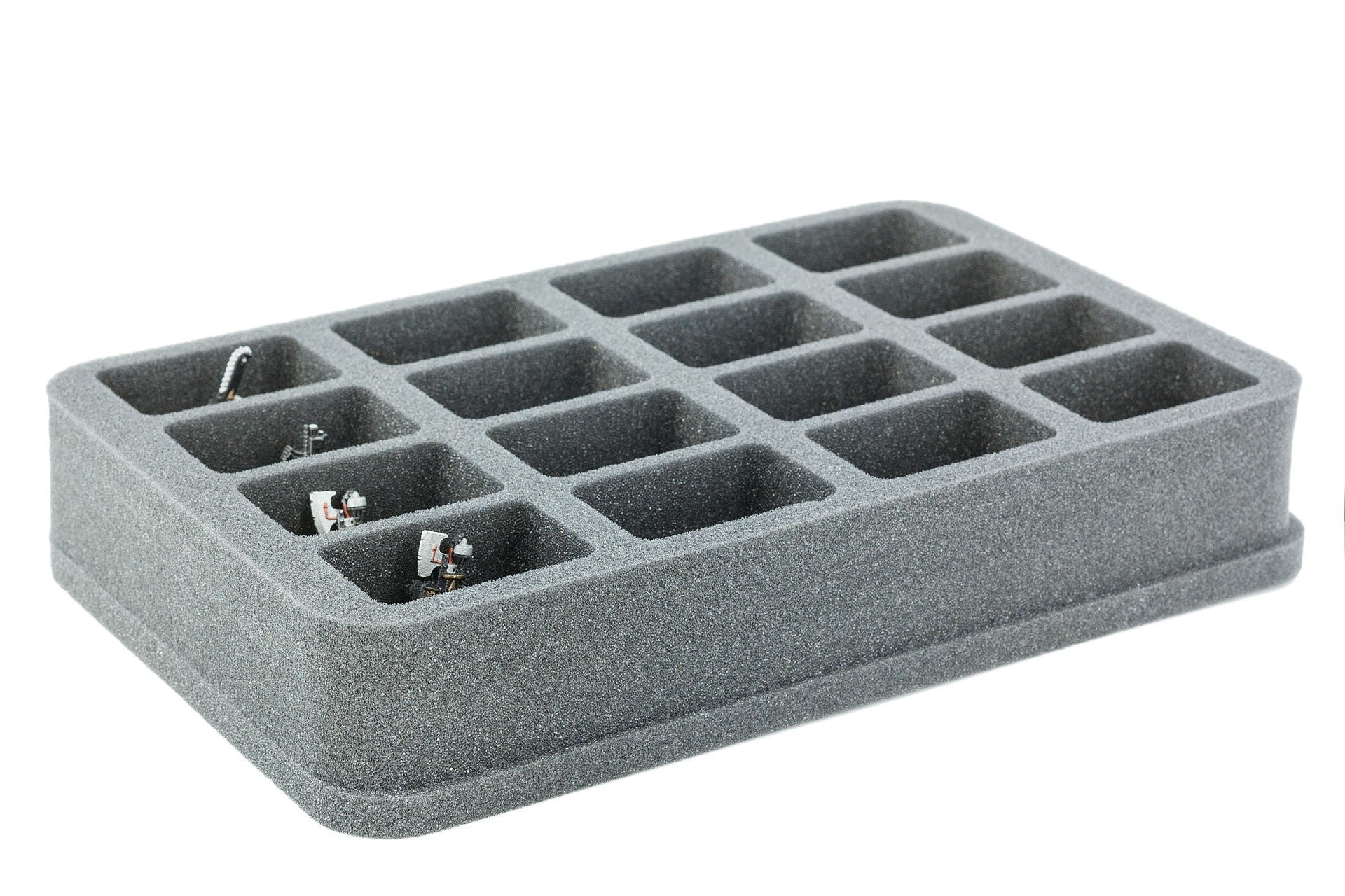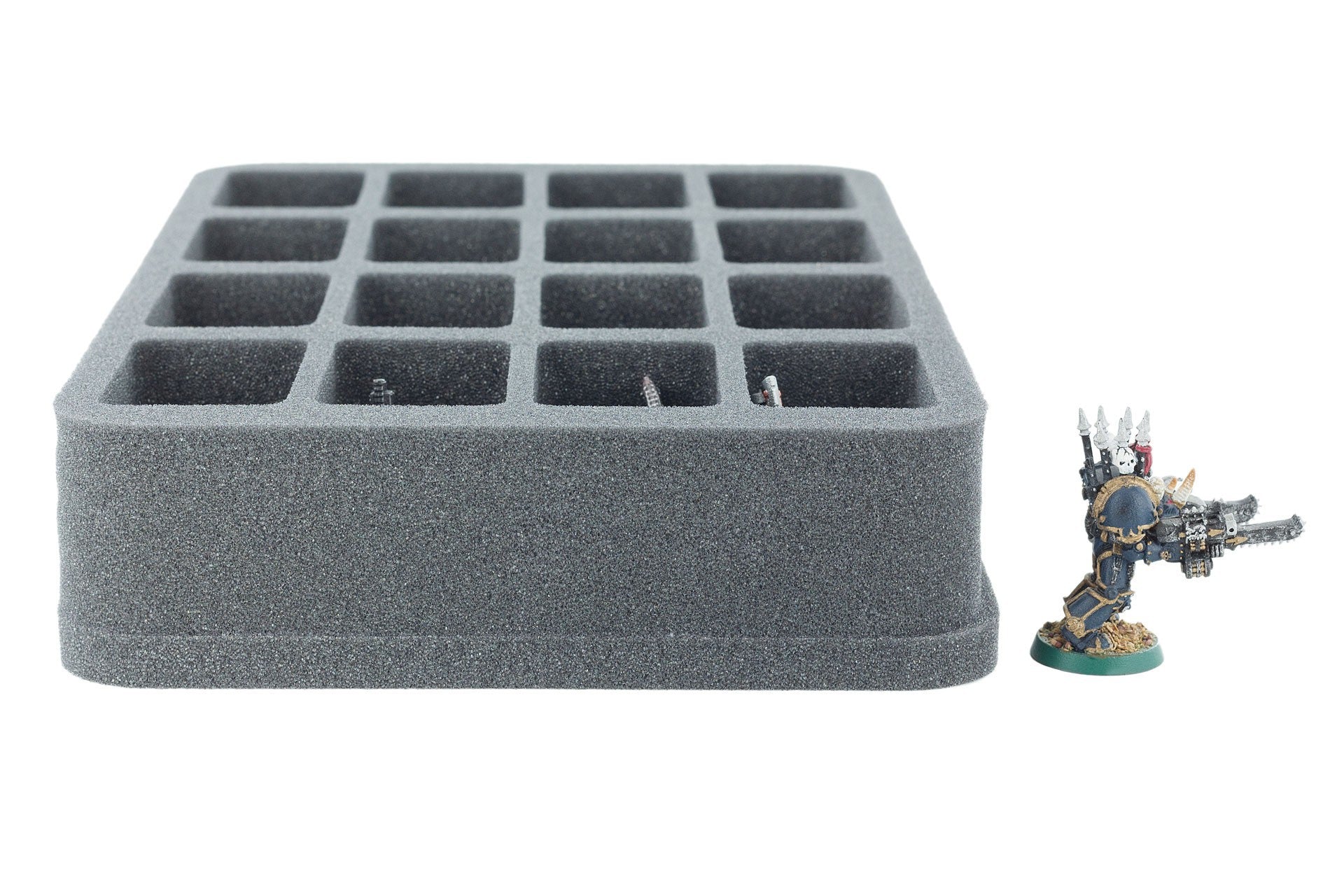 Plateau en mousse pour miniatures encombrantes - difficile à ranger. Pour les modèles sur socle jusqu'à 35 mm de diamètre / longueur de bord.