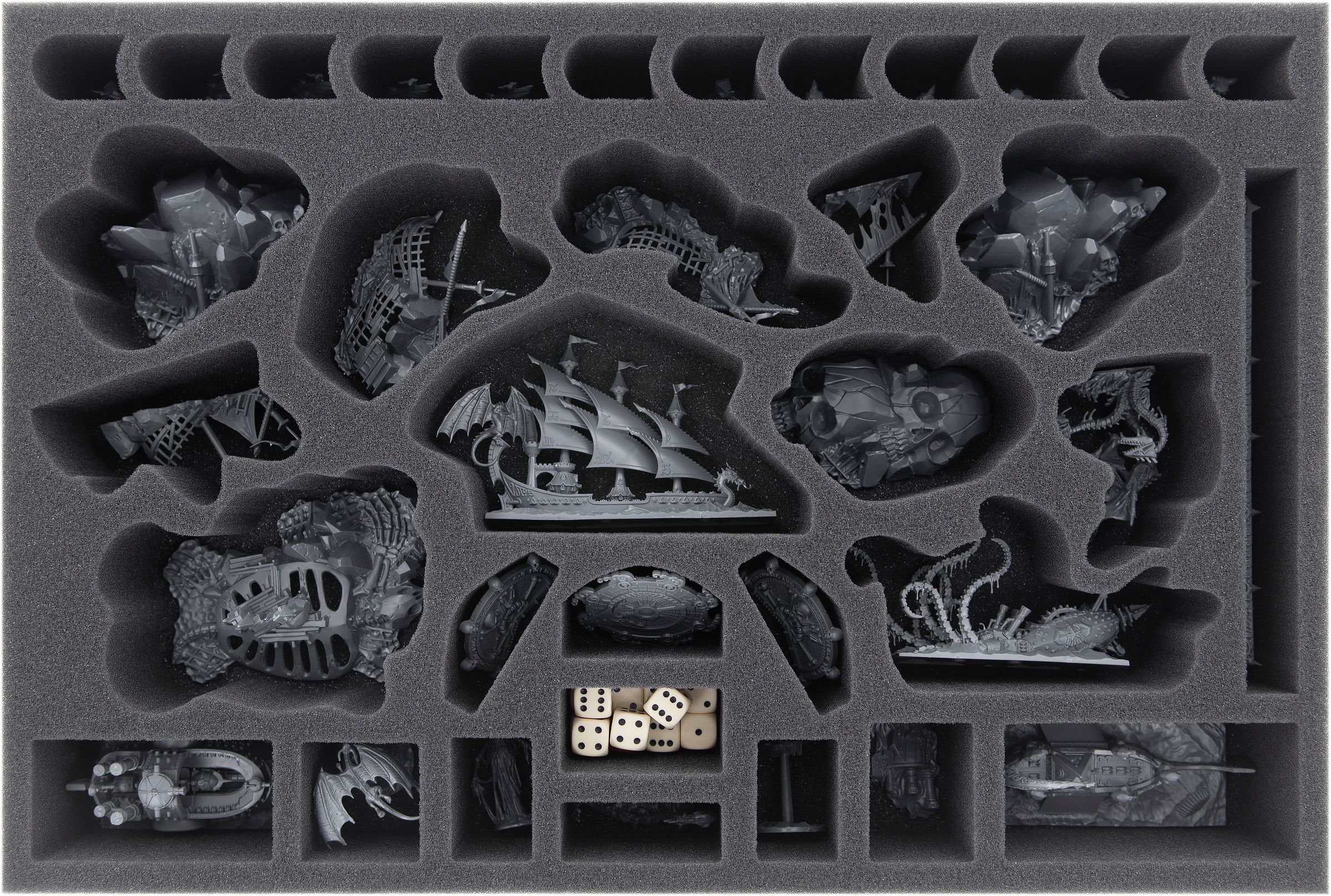 Ainsi, toutes les figurines sont stockées en toute sécurité, tout le matériel de jeu soigneusement rangé et le contenu de votre Dreadfleet box est toujours protégé de manière optimale, même par gros temps.