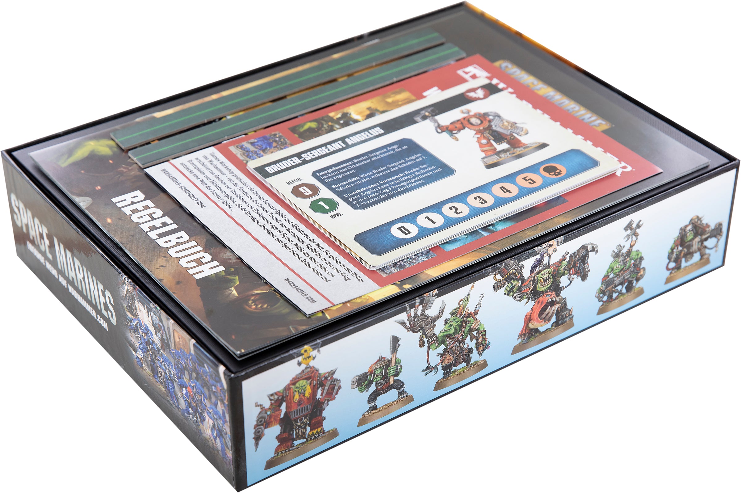 L'insert s'adapte exactement à la boîte de jeu originale de GamesWorkshop et assure la protection et l'ordre de vos modèles et du matériel de jeu.