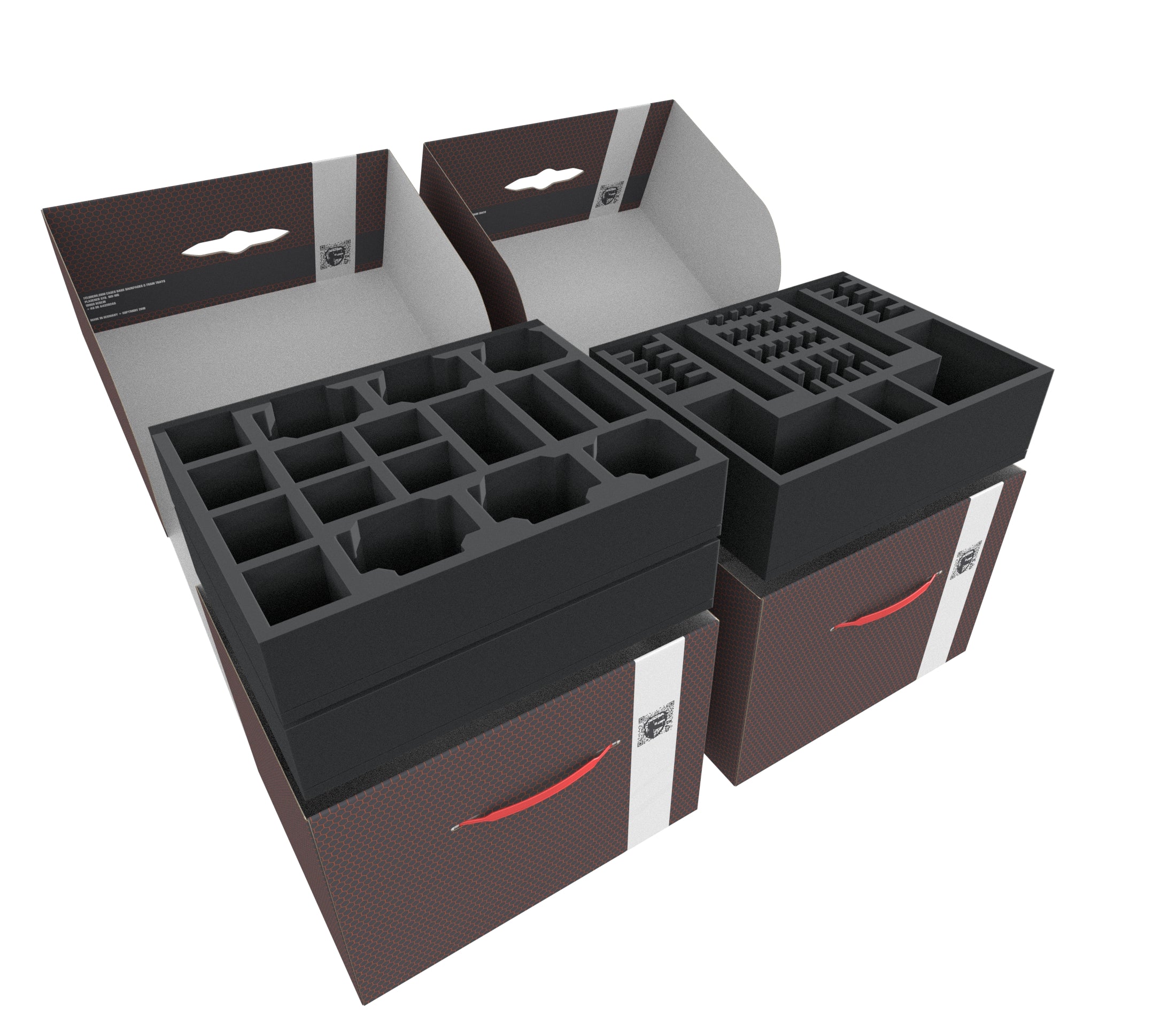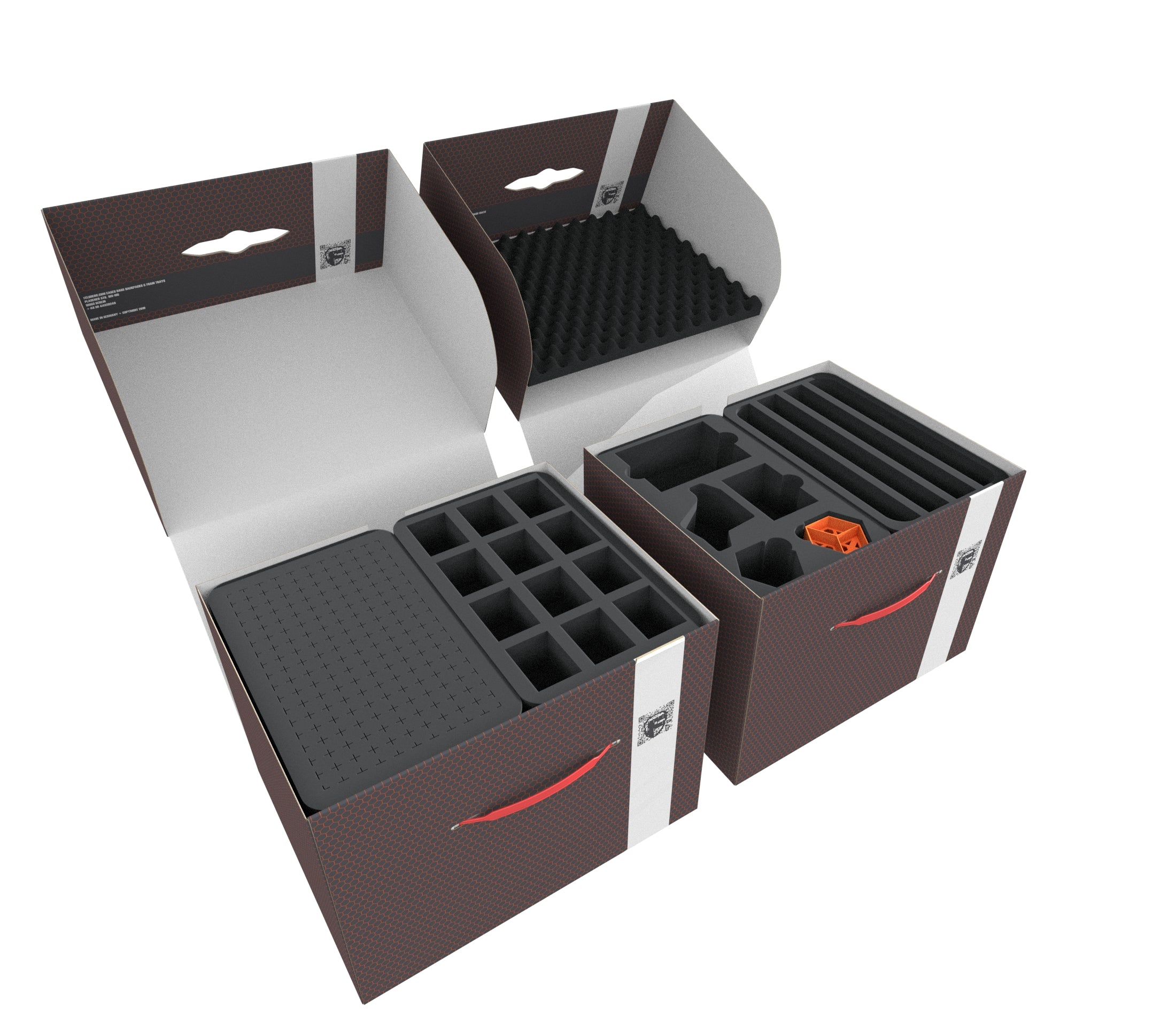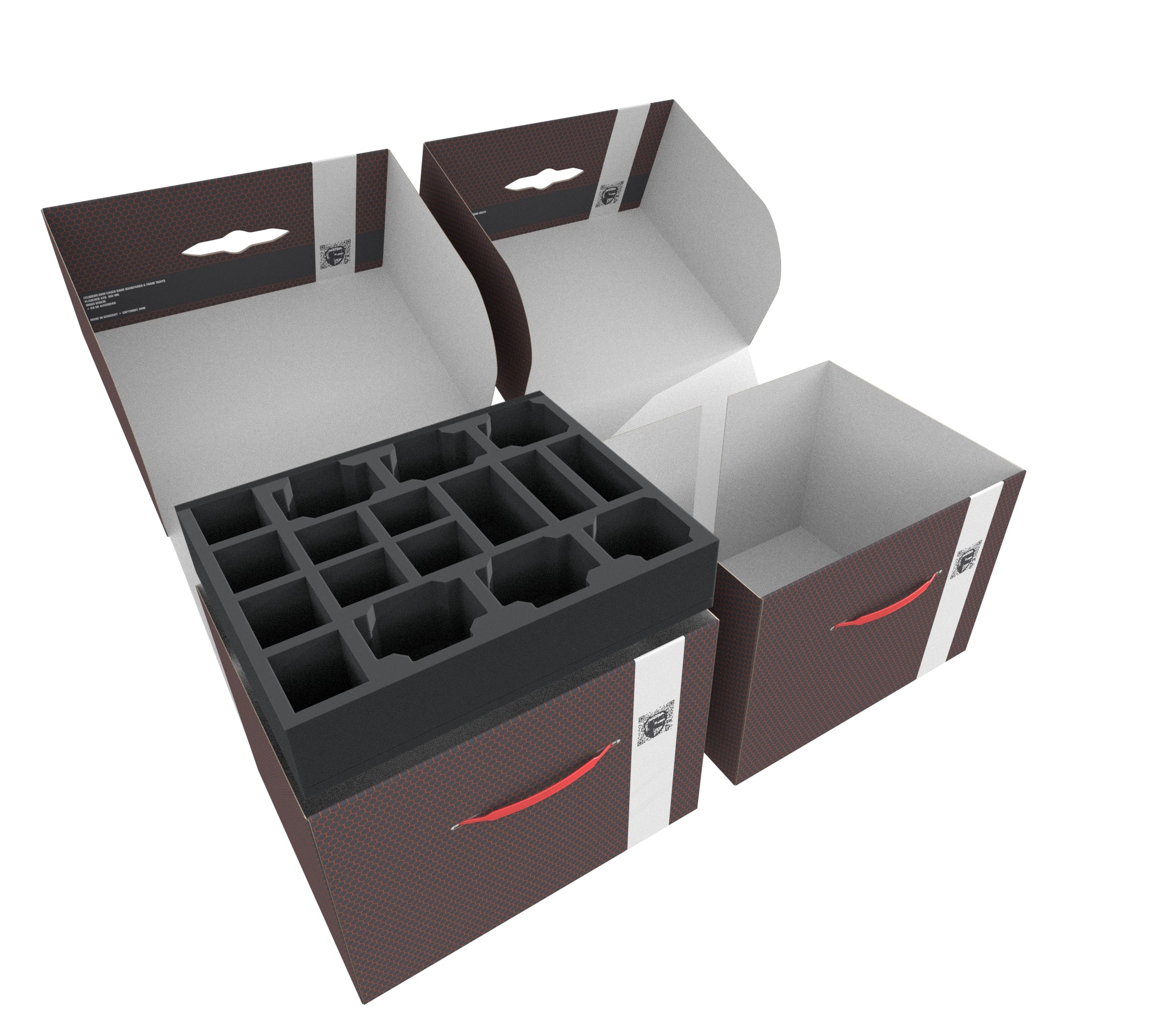 La Storage Box FSLB250 est fabriquée en carton couché à double paroi. Il est donc non seulement agréablement léger, mais aussi particulièrement résistant à la déchirure et stable. Grâce aux plateaux en mousse assortis, les figurines et le matériel de jeu peuvent être stockés en toute sécurité et à l'abri de la poussière, et peuvent également être transportés sans effort grâce à la poignée de transport en plastique.