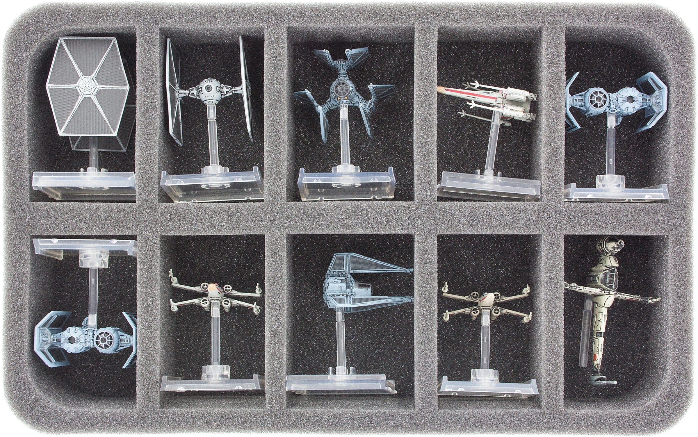 - 1 x Schaumstoffeinlage für 10 Star Wars X-WING Raumschiffe auf Base, Token oder Zubehör