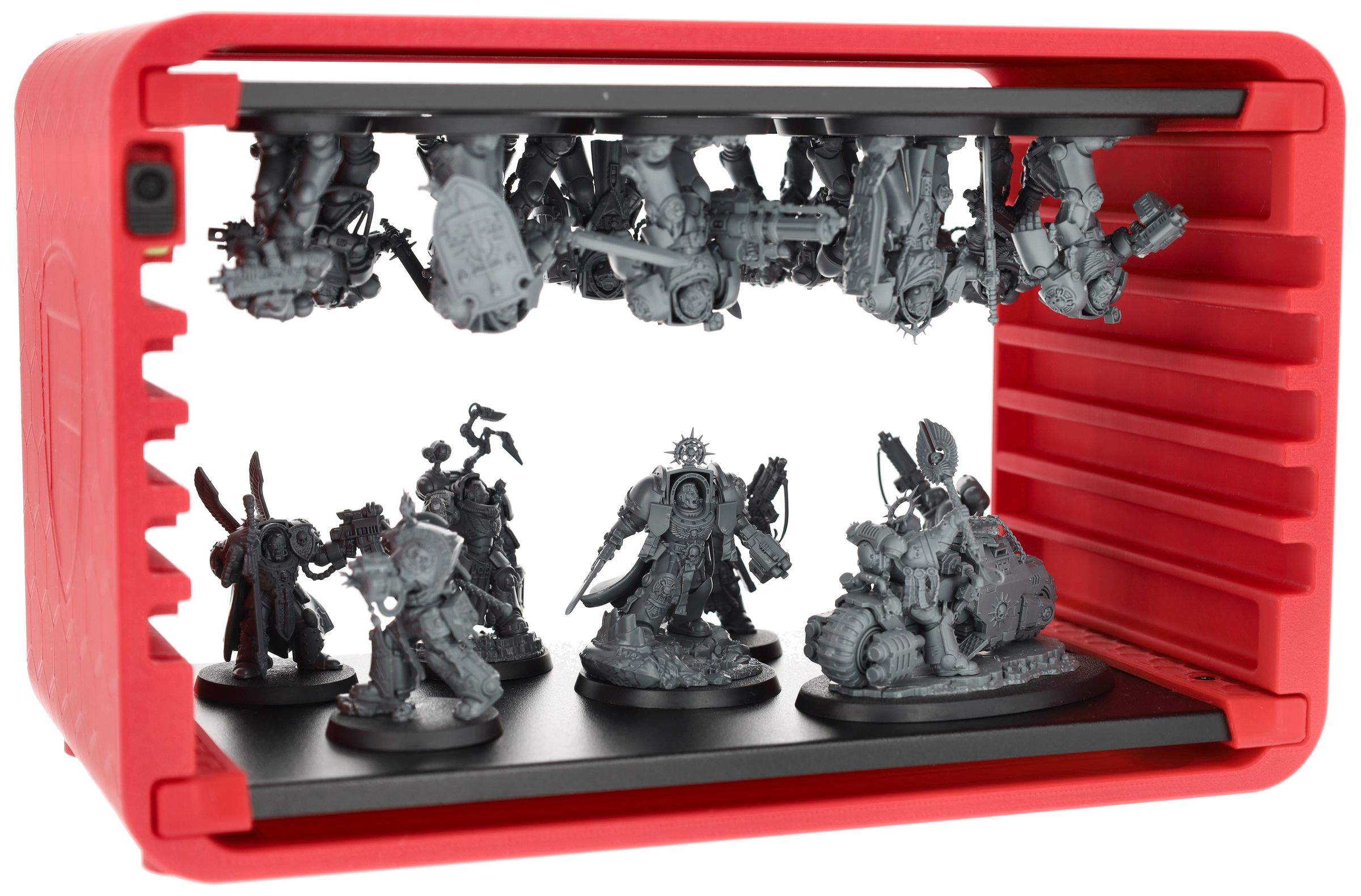 - 7 tray slots for the magnetic trays - flexible layout depending on miniature height