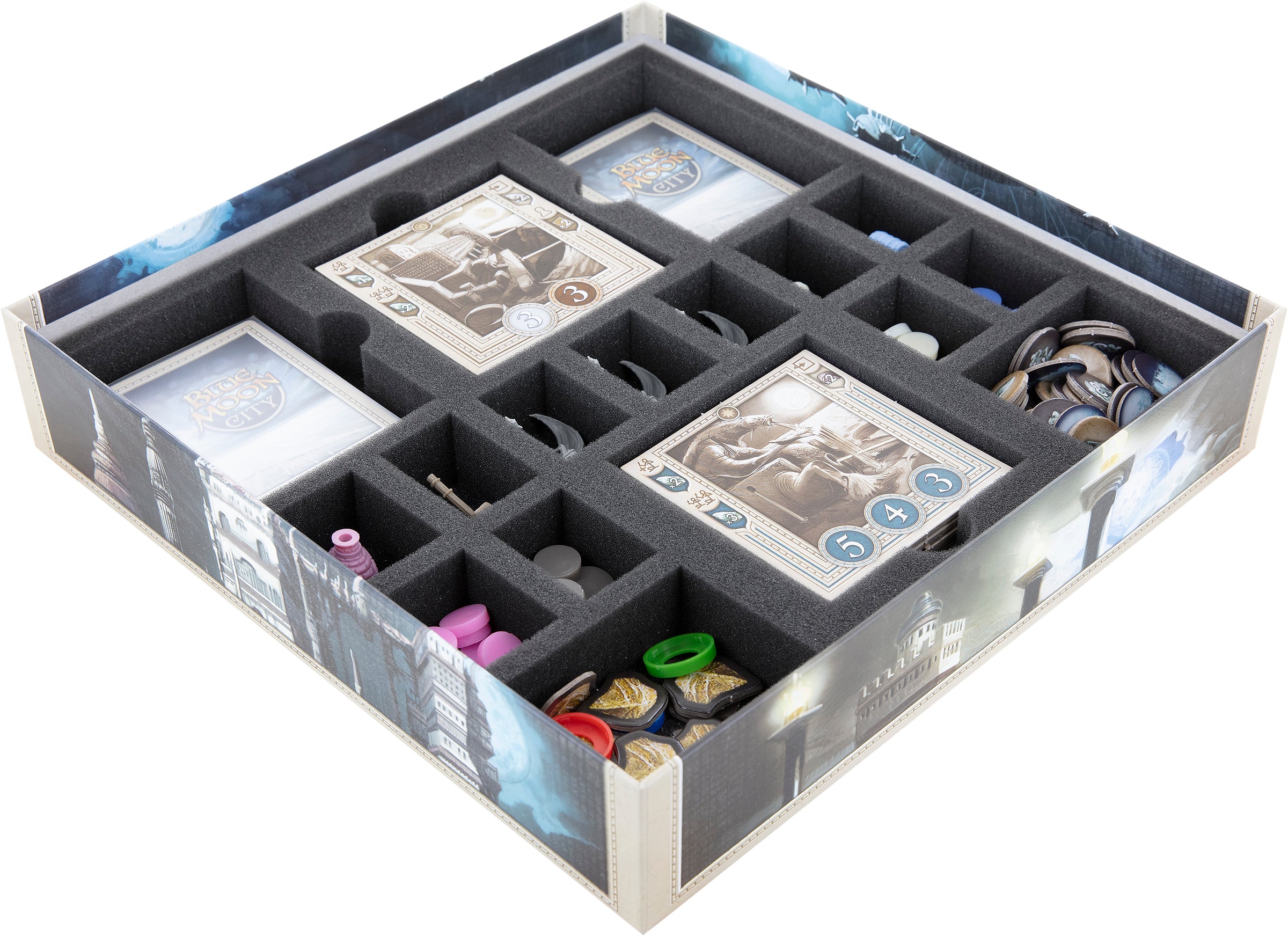 Blue Moon City est en ruines après l'âge des ténèbres. Reconstruisez la ville. Pour éviter qu'un quelconque jeton ne vous empêche d'accomplir votre tâche monumentale, nous vous proposons le jeu de mousse Feldherr correspondant. Grâce à lui, tu peux ranger tout le matériel de jeu dans le boîte du jeu et tout garder en ordre.