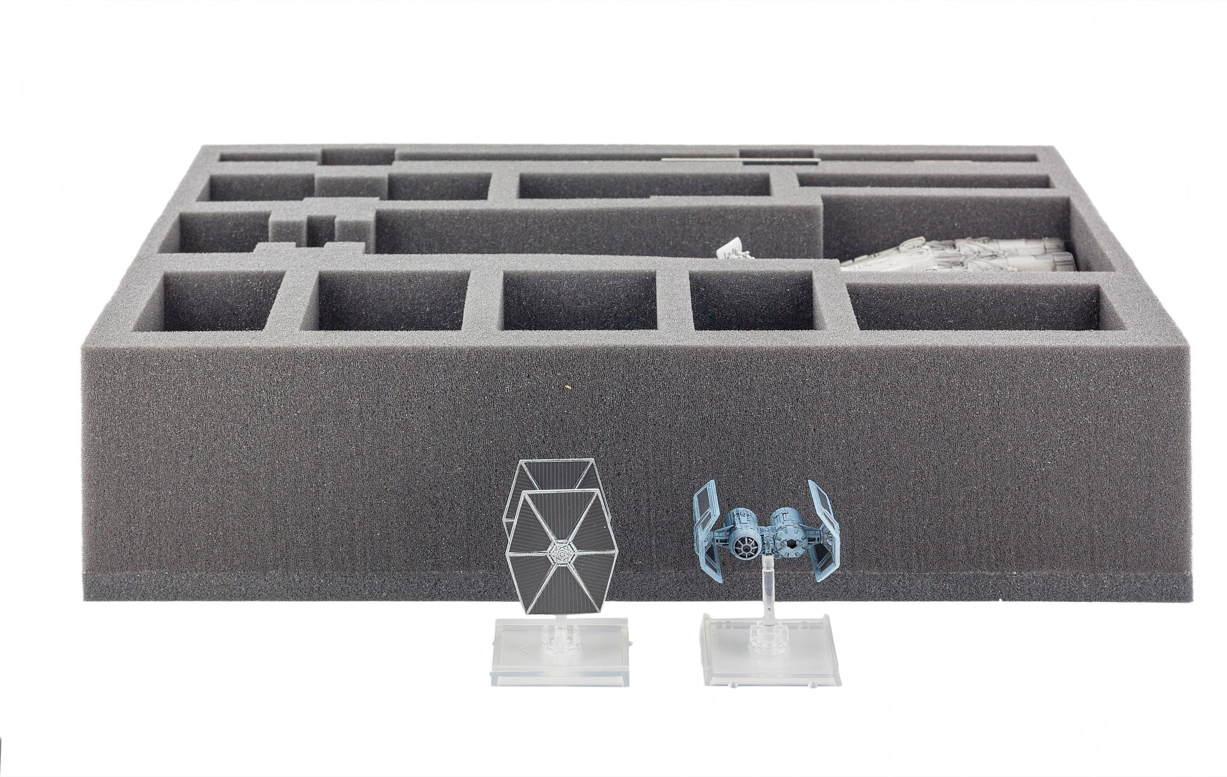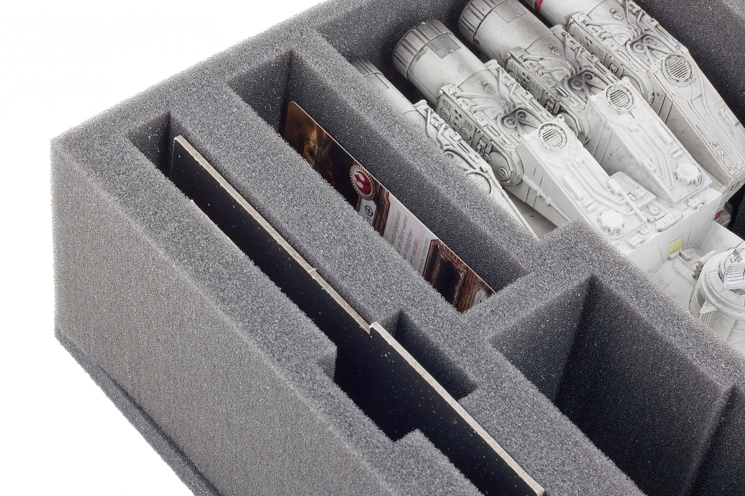 Spécialement conçu pour le plateau en mousse Star Wars X-WING Tantive IV (CR90). Dans cette contribution non seulement à la Star Wars X-WING Tantive IV (CR90) se déroule en toute sécurité, mais aussi les accessoires, tels que les bases, jetons, stand et il ya encore de la place pour les vaisseaux spatiaux X-Wing comme le HWK-290, Tie Fighter et autres.