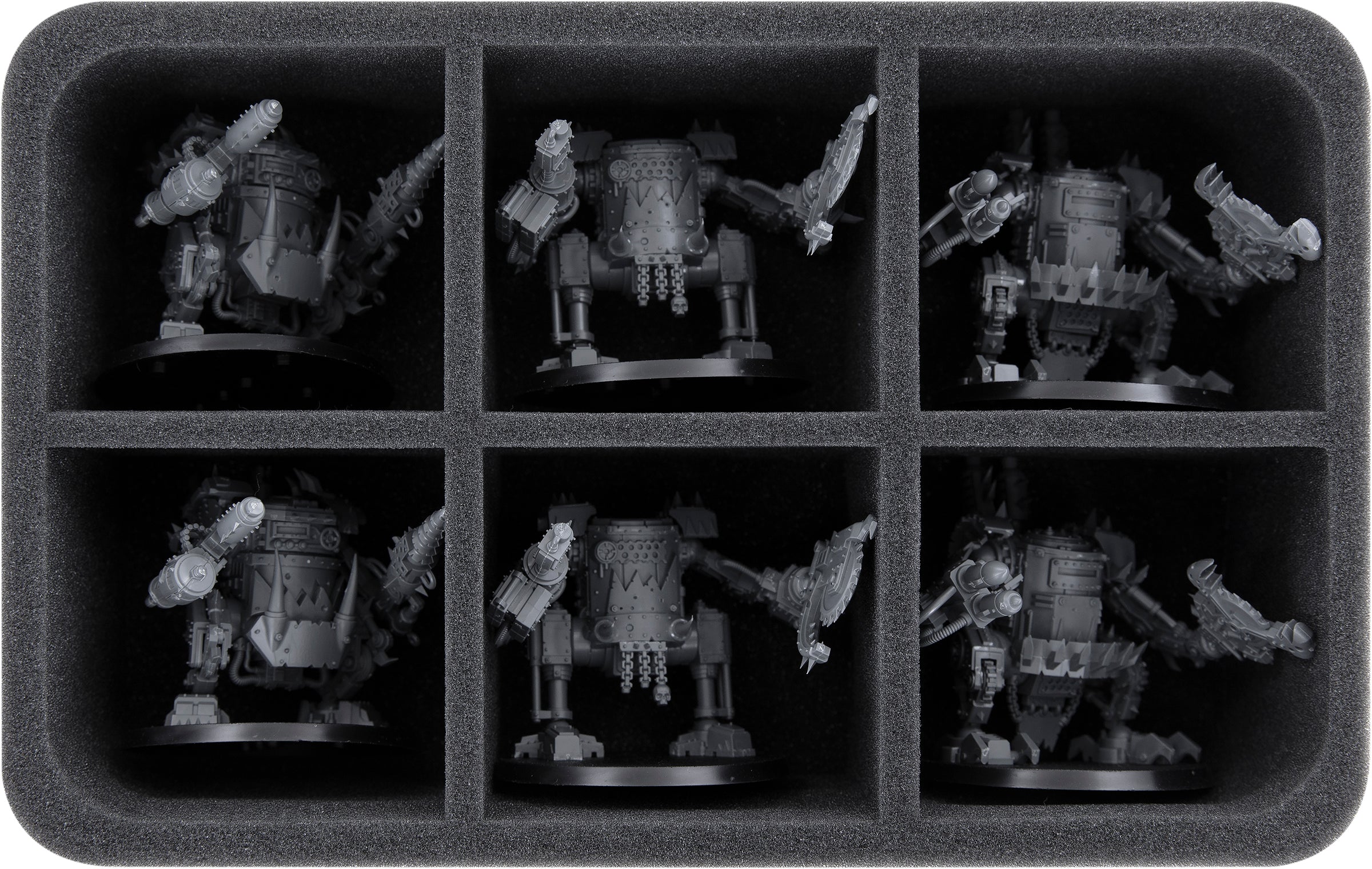 Sur ce plateau en mousse Feldherr, vous avez la place de ranger jusqu'à 6 figurines de votre armée. L'insert est particulièrement adapté au rangement des Killa Kans et des modèles de taille similaire.