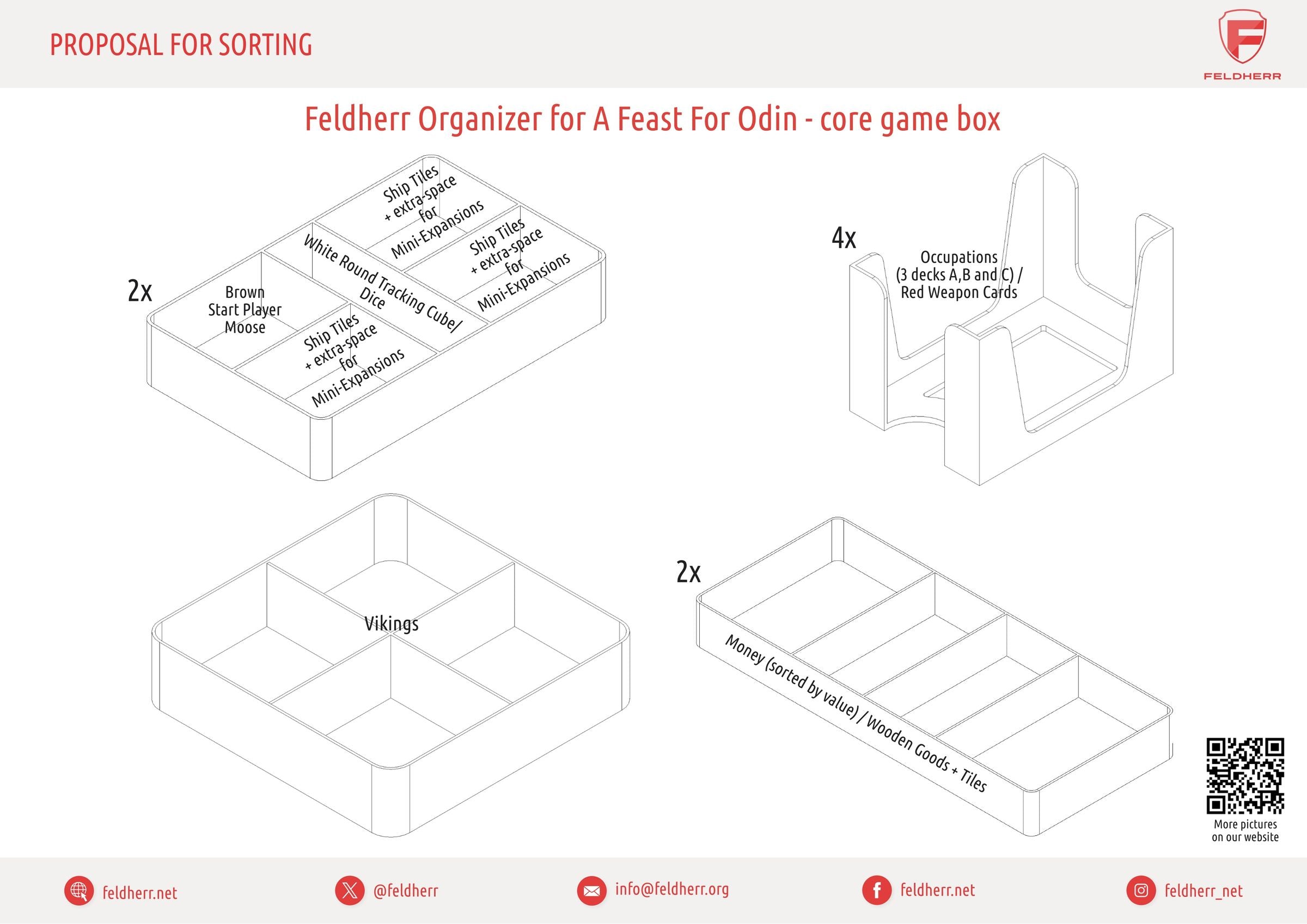 Damit du machen kannst, was Wikinger eben so machen – also plündern, rauben und erobern – kümmern wir uns mit diesem praktischen Feldherr Organizer Insert für Ein Fest für Odin um die Ordnung in der Box und auf dem Spieltisch.