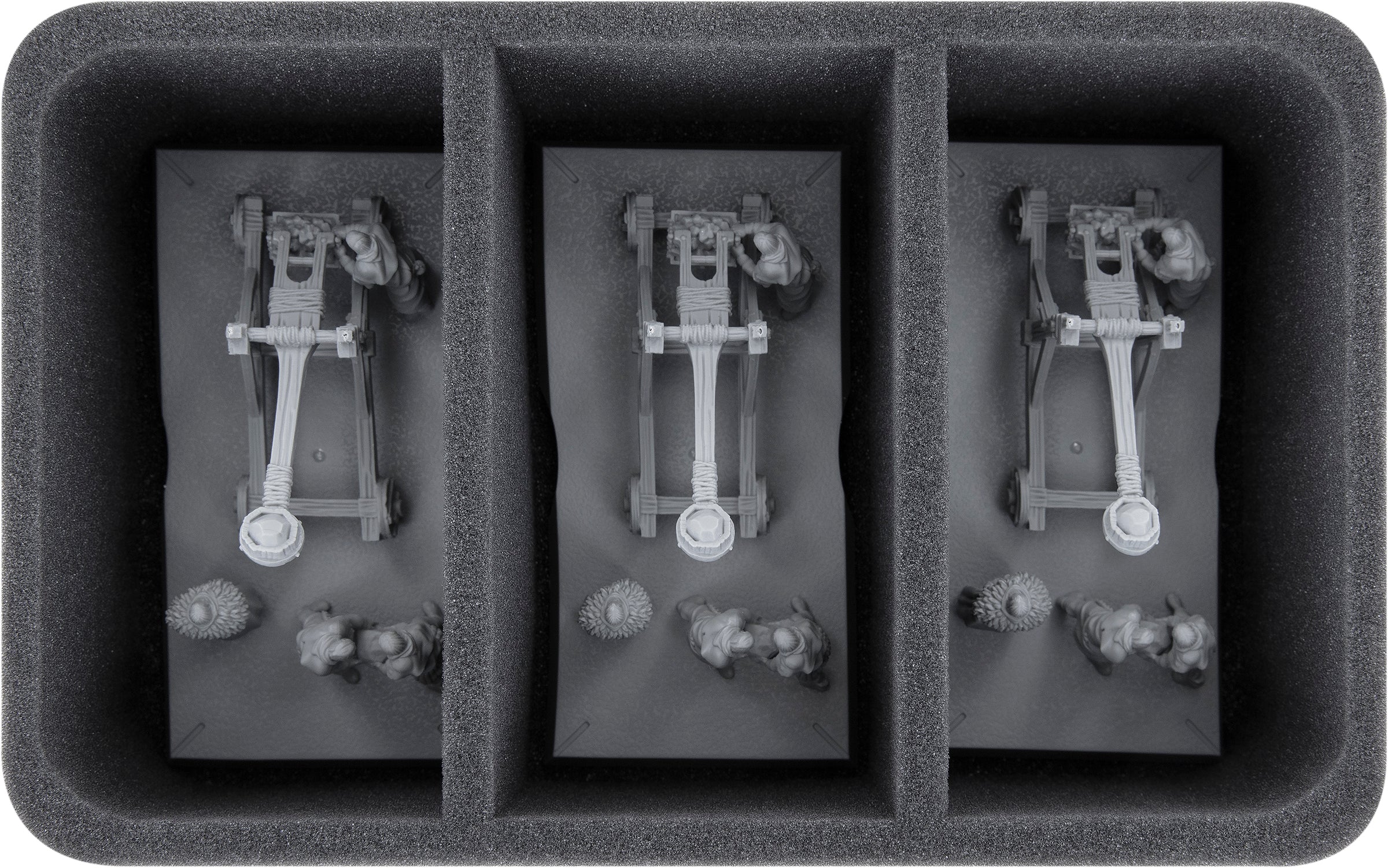 Diese Half-Size-Schaumstoffeinlage eignet sich mit ihren 3 großen Fächern hervorragend um große Miniaturen für A Song of Ice + Fire sicher aufzubewahren und zu transportieren.