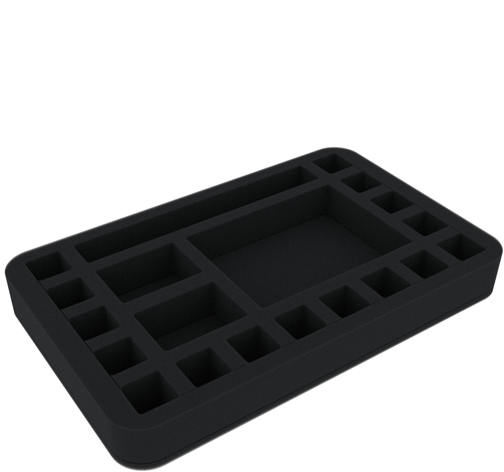 - 2 Fächer für Miniaturen: 54 mm lang x 37 mm breit x 25 mm tief