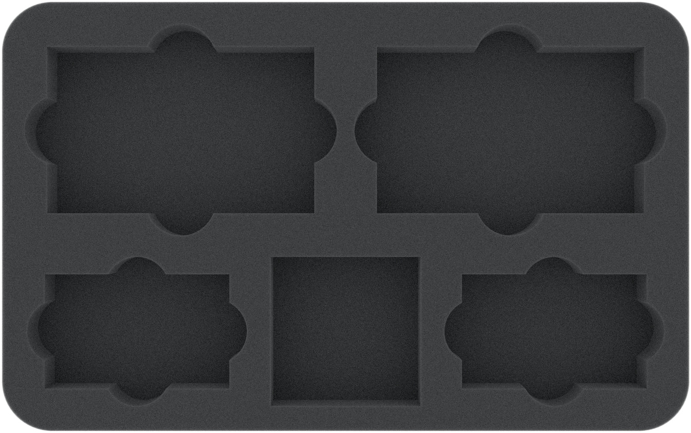 Die Half-Size-Schaumstoffeinlage HSMEQB030BO ist unterteilt in 5 Fächer in 3 verschiedenen Größen. Ideal zum ordentlichen Aufbewahren von Zubehör, wie Karten, Token, Bases