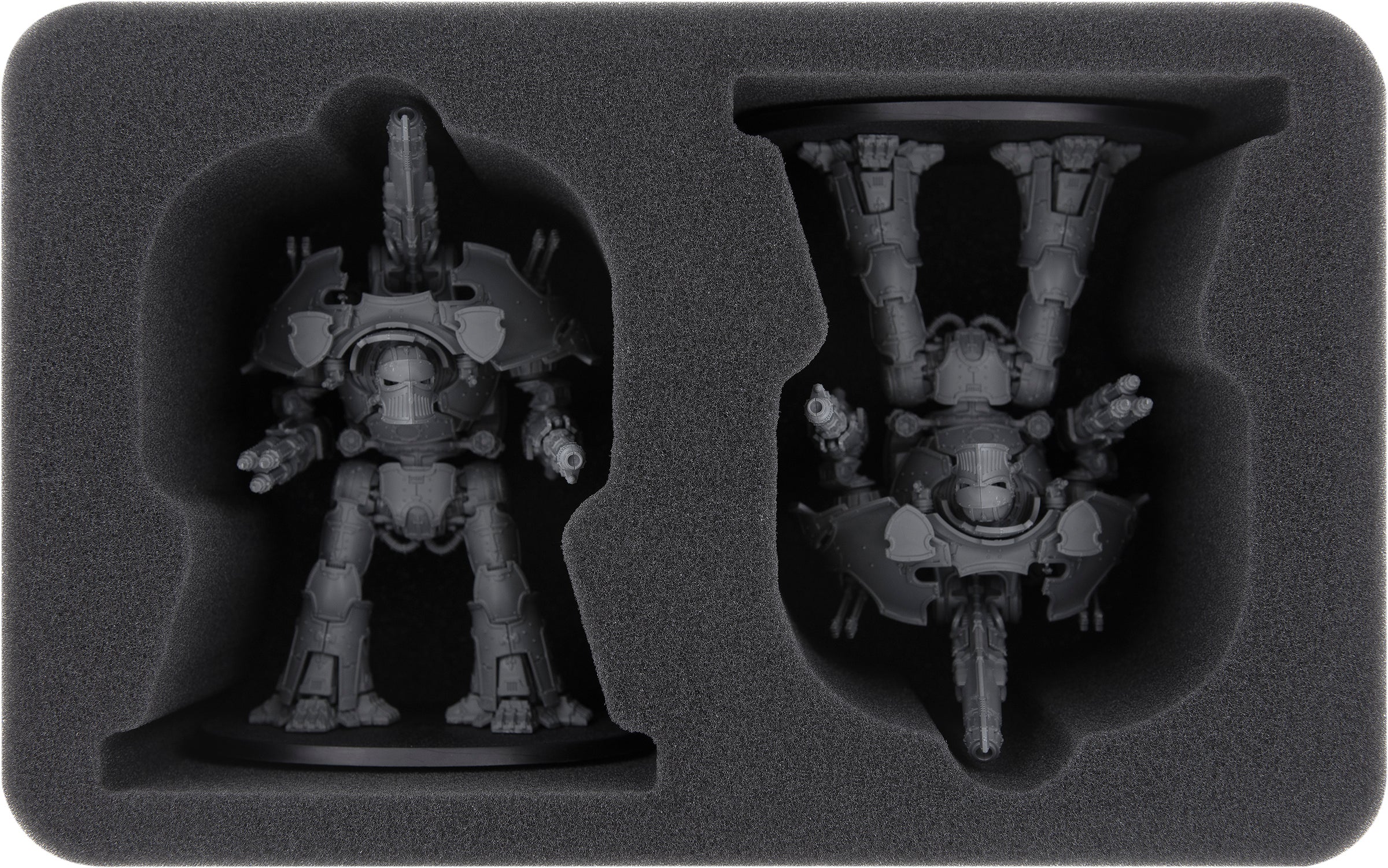 Damit diese Vernichtungsmaschine feuerbereit das Schlachtfeld erreicht, sollte das Modell vor und nach dem Spiel an einem sicheren Platz aufbewahrt werden. Und genau dafür bekommst hier die passende Feldherr Schaumstoffeinlage für gleich zwei Warbringer Nemesis Titans.