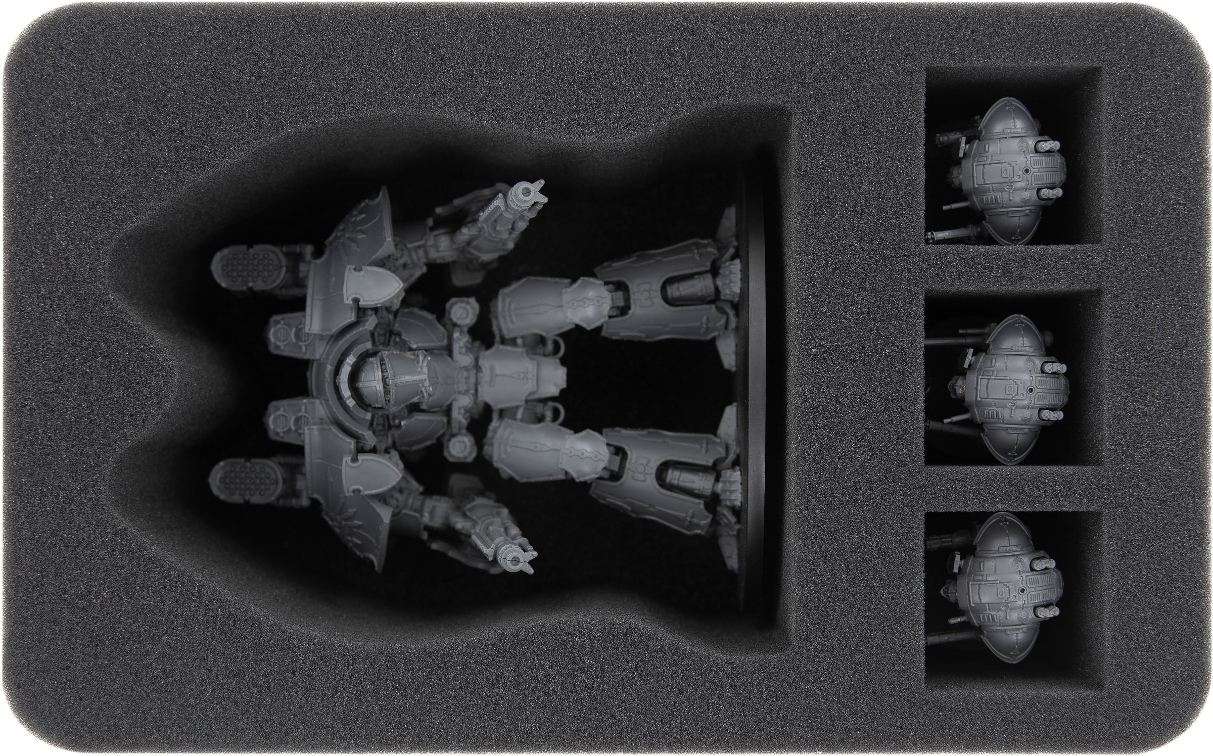 Auch wenn die mächtigen Titanen auf den Schlachtfeldern so einiges aushalten, brauchen die detaillierten Modelle vor und nach dem Spiel einen Platz an dem sie sicher aufgehoben sind. Deshalb haben wir diese Schaumstoffeinlage für dich entworfen.