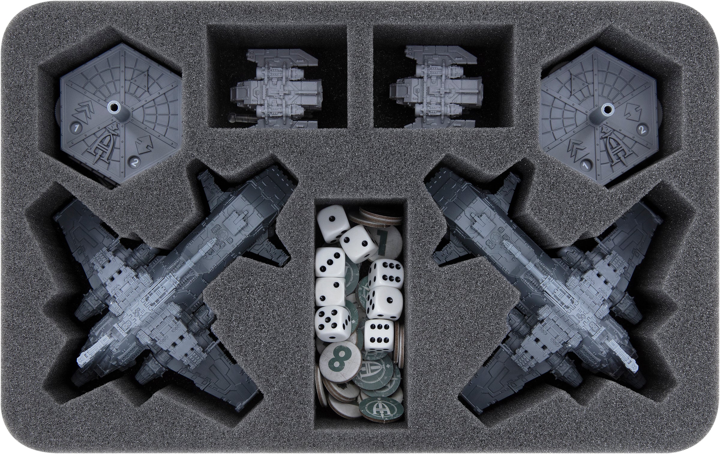 - 1 Half-Size-Schaumstoffeinlage mit 7 Fächern für 2 Thunderhawk Gunship + Flugbases (HSMFGC060BO)
