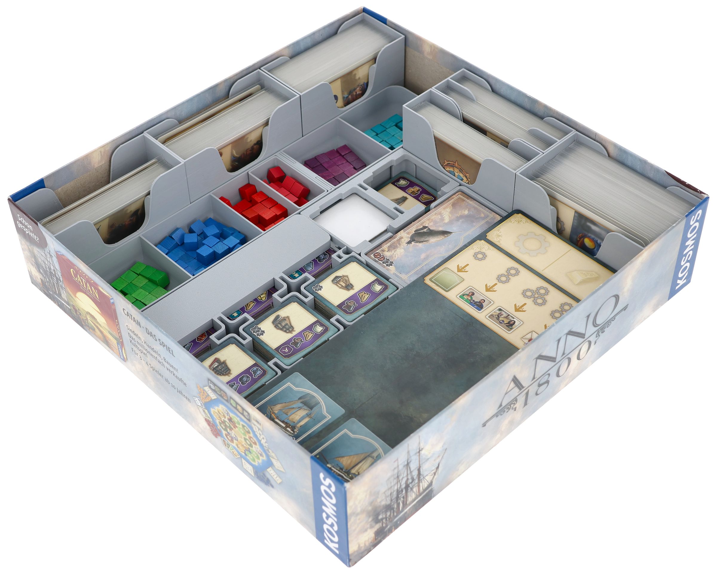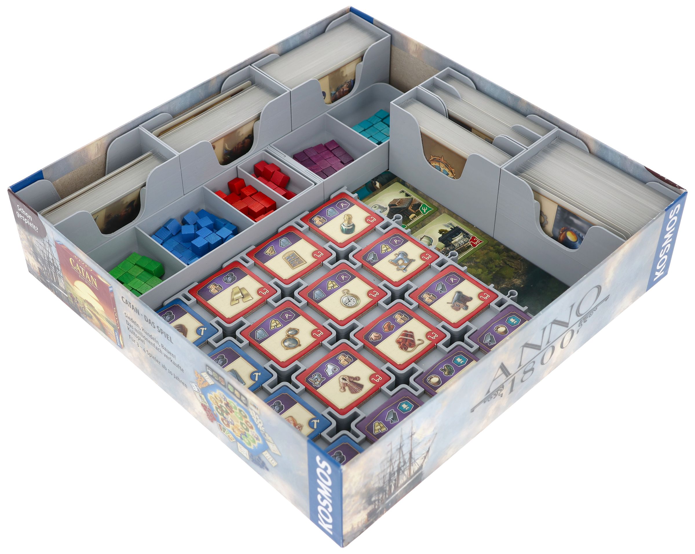 - Der Organizer aus robustem Kunststoff passt exakt in die Grundspielbox (Abmessungen des Organizers: 288 mm x 288 mm x 65 mm) und bietet Platz für alle Komponenten des Grundspiels und der Erweiterung.