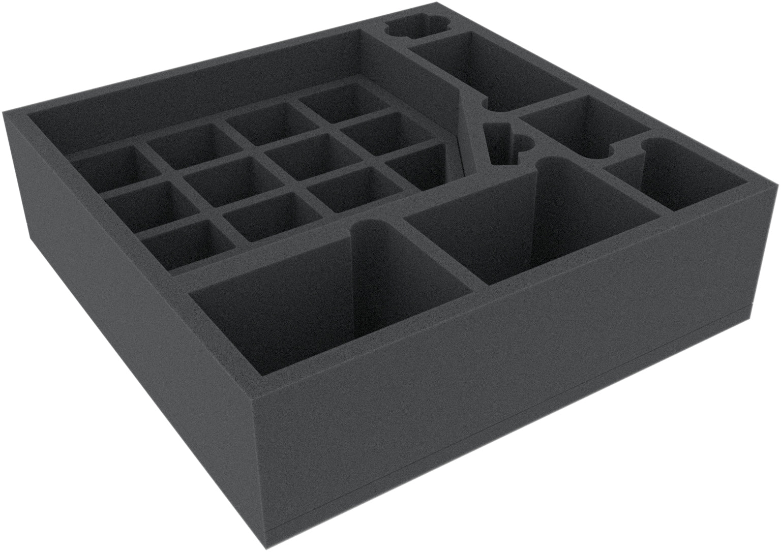 - Die Schaumstoffeinlage hat die Abmessungen: 285 mm x 285 mm x 80 mm Gesamthöhe (70 mm Nutzungshöhe + 10 mm Schaumstoffboden).