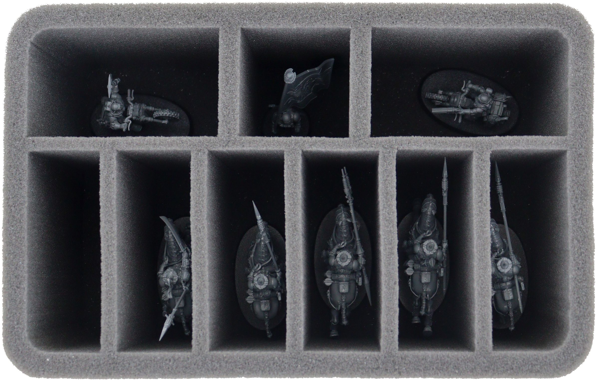 • 1 Half-Size Schaumstoffeinlage mit 9 Fächern für Kavalleriemodelle wie Attilanische Gardereiter und Miniaturen mit ähnlichen Abmessungen (HS110A009)