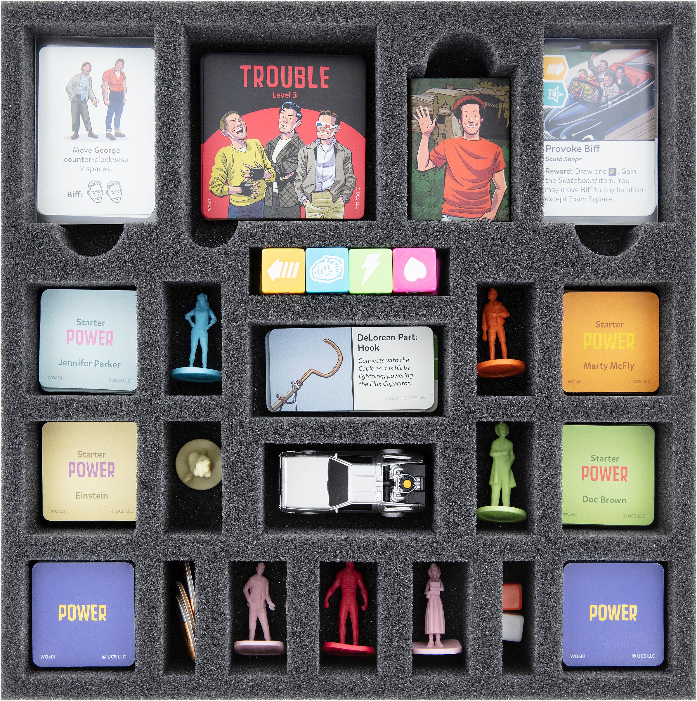 • Das Set passt genau in den originalen Brettspielkarton von „Back to the Future: Back in Time“.