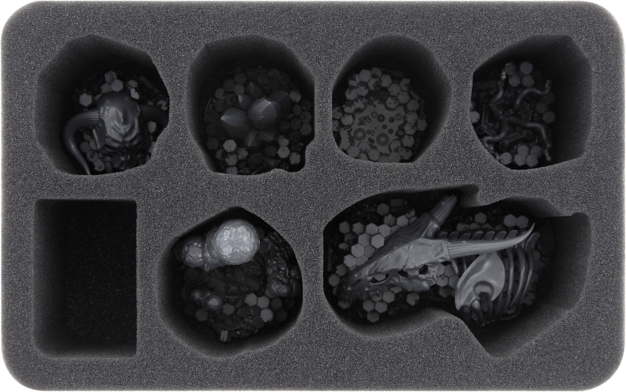 Eingepackt in weichen Schaumstoff, bleiben die Miniaturen auch auf unebenen Wegen an ihrem Platz und sind bestens vor Transport- und Lagerschäden geschützt. Empfindliche Elemente, wie Tentakel und Hörner, bleiben ganz, und aufwendig bemalte Modelle kehren unversehrt und ohne Kratzer auf das Spielfeld zurück.