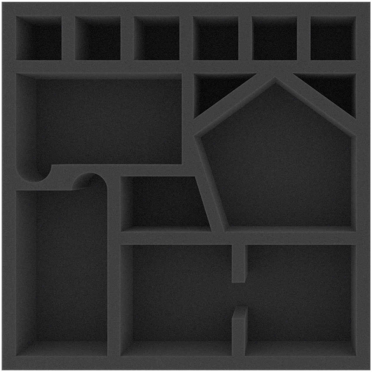 Die Schaumstoffeinlage bietet zuverlässigen Schutz für deine Miniaturen und Platz, um dein Spielmaterial ordentlich unterzubringen. Dank des passgenauen Zuschnitts haben die Modelle einen festen Sitz. Auch wenn es beim Transport durch dunkle Keller geht und man nicht weiß, worüber man als Nächstes stolpert, die Figuren verbleiben an ihrem Platz. Der weiche, feinporige Schaumstoff sorgt dafür, dass deine Modelle gut vor Schäden geschützt sind. Deine bemalten Modelle sind hier sicher und Kratzer, sowie abplatzende Farbe werden zuverlässig verhindert.