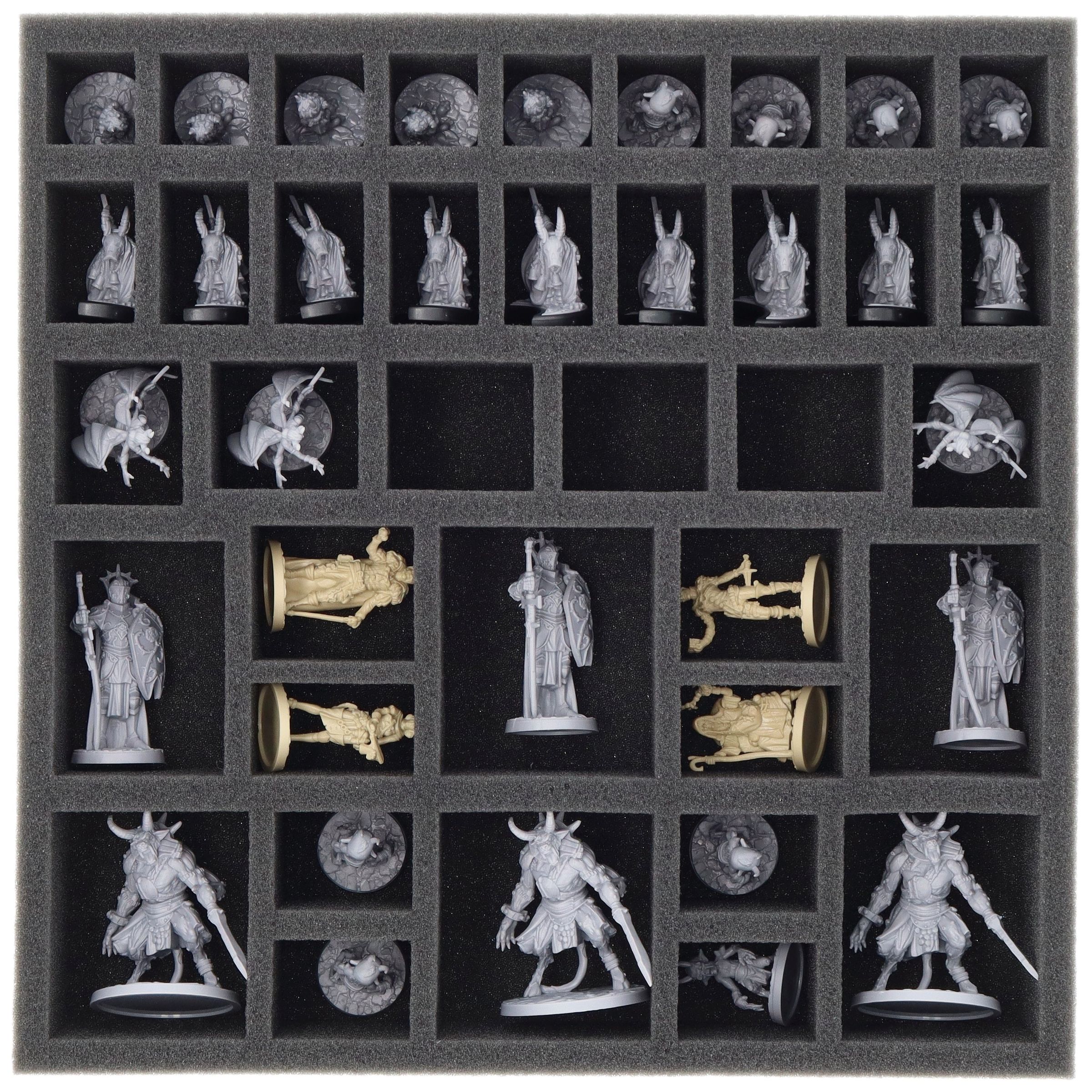 Damit deine Miniaturen nichts von ihrer Pracht verlieren, haben wir das passende Schaumstoff-Set für deine Grundspielbox. So sind deine Figuren zuverlässig geschützt und ordentlich verpackt.