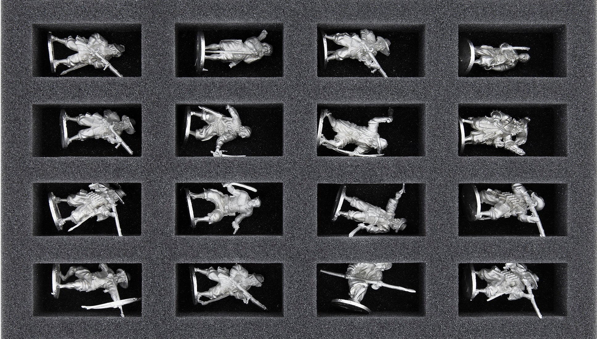 Mit dieser Feldherr Schaumstoffeinlage sind bis zu 16 Miniaturen sicher untergebracht. Die gleich großen Fächer eignen sich hervorragend, um Standard-Einheiten übersichtlich und gut geschützt aufzubewahren.