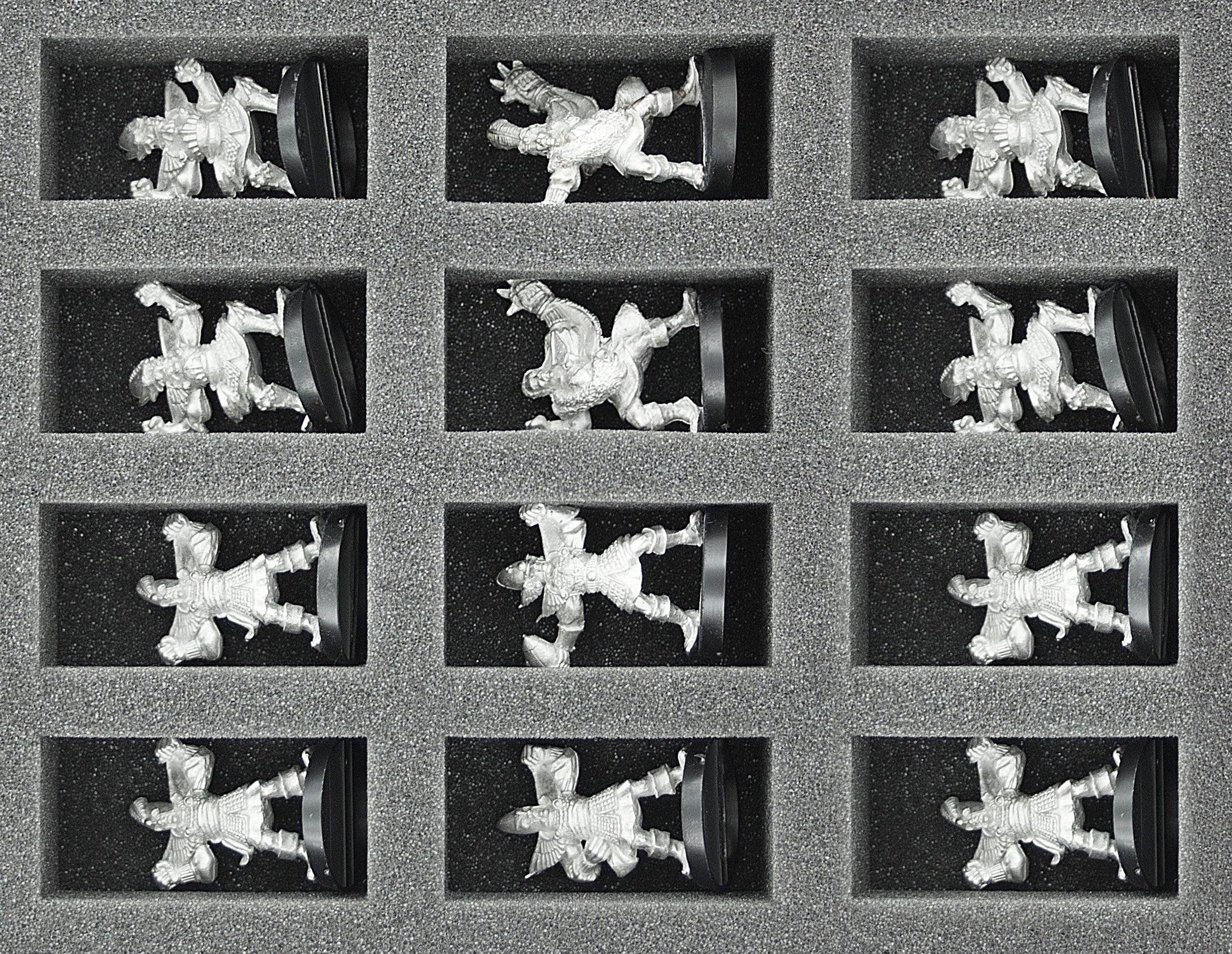 Spezielle Schaumstoffeinlage für 16 breitere Blood Bowl und andere Fantasy Football Miniaturen.
