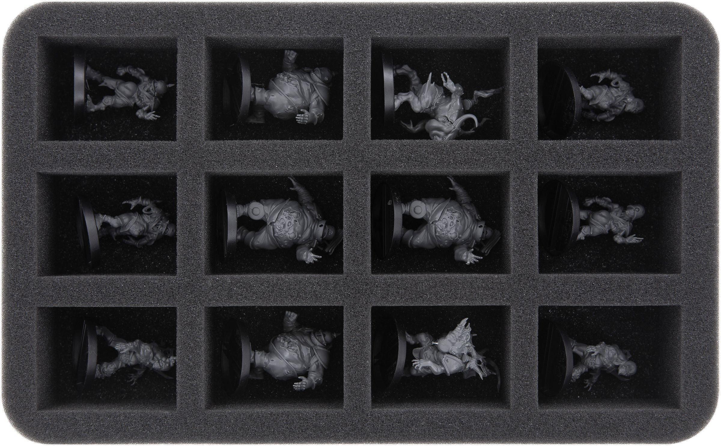 Diese Half-Size-Schaumstoffeinlage sorgt mit 12 Fächer für den Schutz deiner Blood Bowl-Miniaturen abseits des Spielfelds. Mit ihr lassen sich deine Modelle ordentlich und sicher aufbewahren. Empfindliche Teile der Figuren sind vor Beschädigungen geschützt und die Farben bemalter Miniaturen bleiben erhalten.