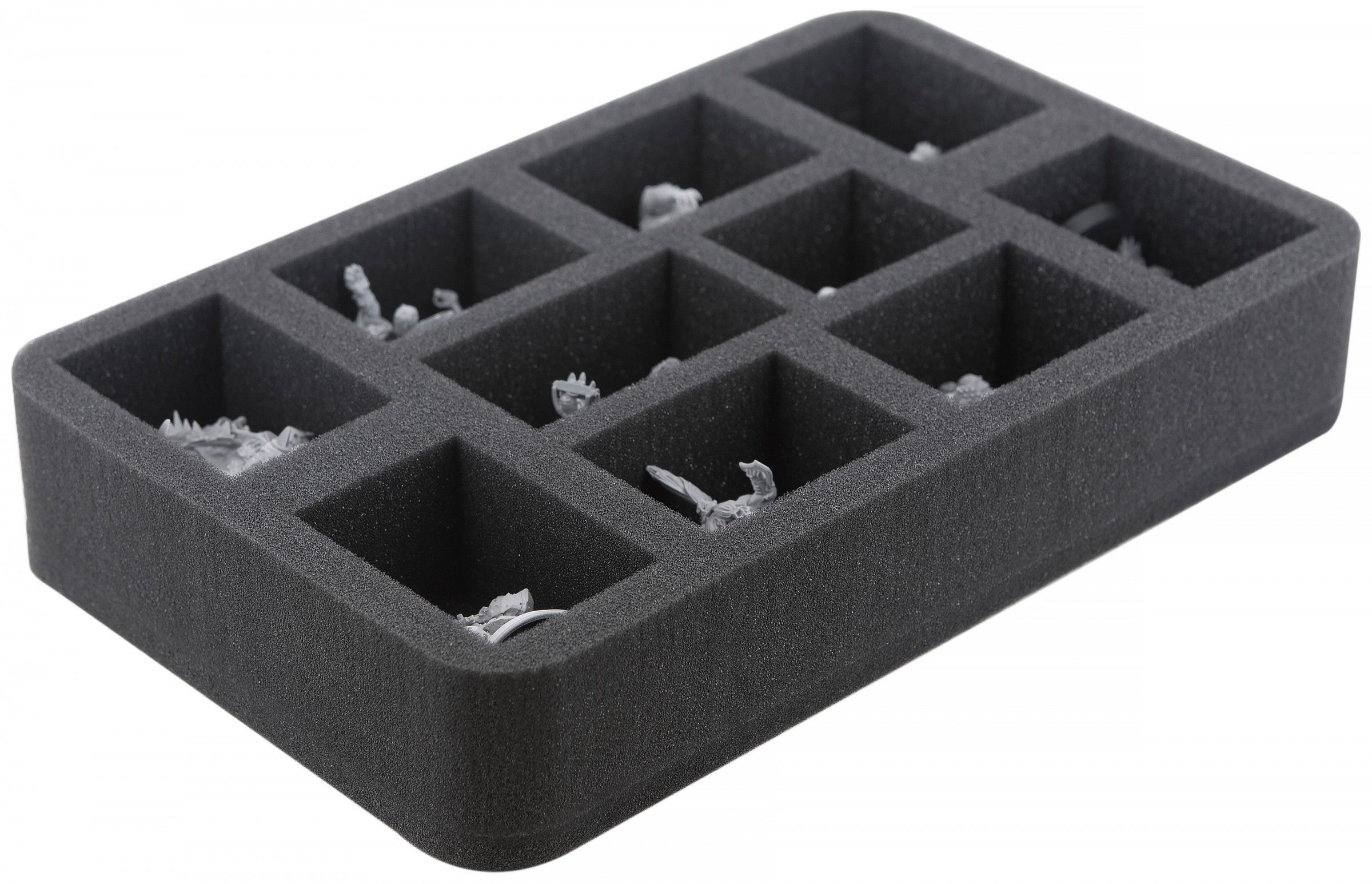 Diese Schaumstoffeinlage eignet sich perfekt für Blood Bowl. In den 10 Fächern der Half Size-Matte kannst du deine Blood Bowl-Miniaturen angemessen schützen und transportieren..
