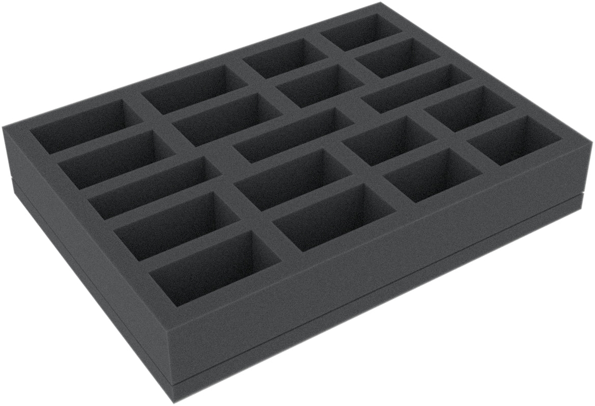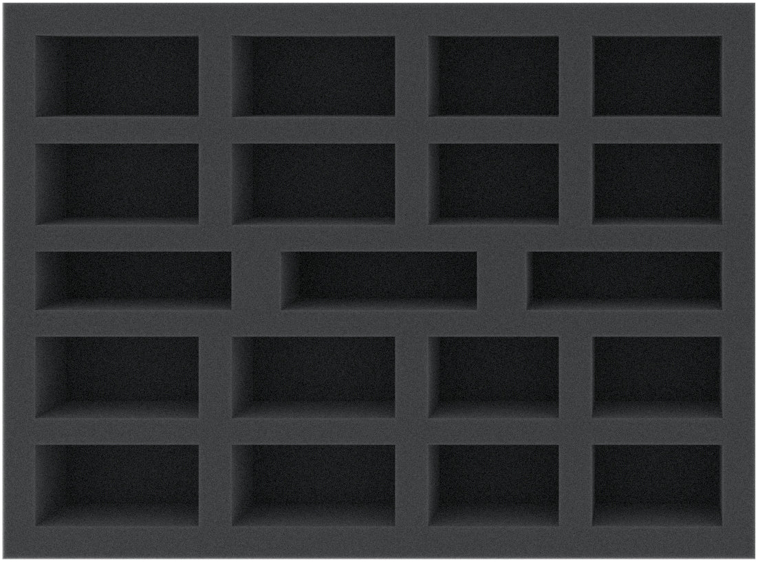 Diese 40 mm hohe Schaumstoffeinlage ist unterteilt in 19 Fächer. Sie eignet sich besonders gut zum sicheren Aufbewahren von Tabletop- und Brettspiel-Miniaturen und anderen empfindlichen Modellen und Kleinteilen.