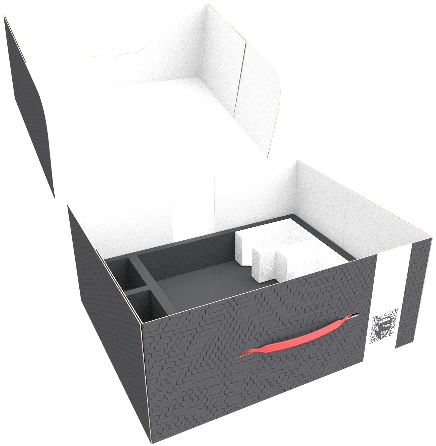 In dieser Lagerbox FSLB150 mit Feldherr Schaumstoffeinlagen und Organizer Insert sind alle Miniaturen und das gesamte Spielmaterial von drei Kickstarter exklusiven Erweiterungen ordentlich und sicher untergebracht.