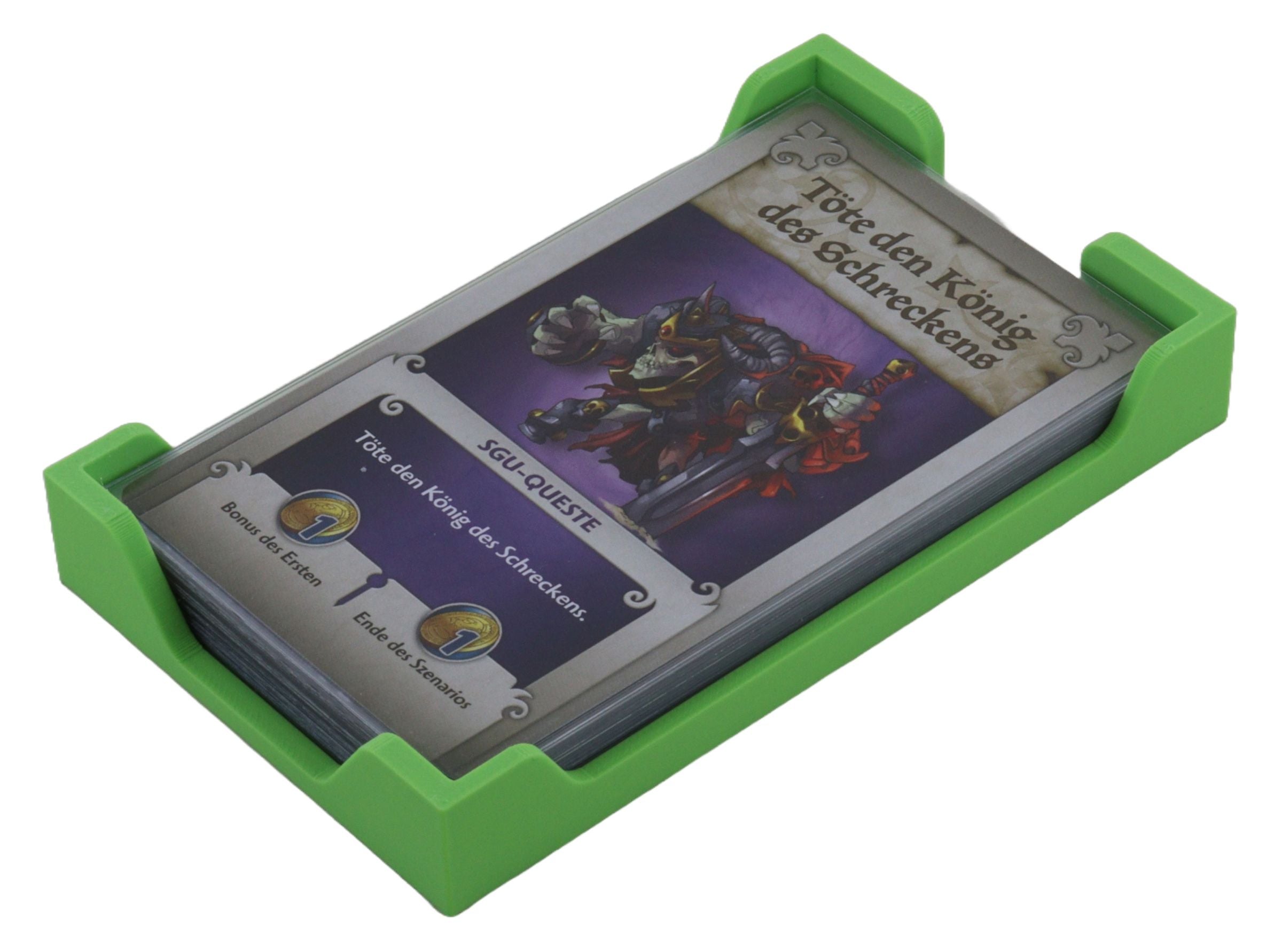 Ob Tabletop, Kartenspiel oder Brettspiel – Der Kartenhalter spart Nerven und Zeit. Er hilft dir beim Organisieren der unterschiedlichen Kartentypen während des Spiels, sorgt dafür, dass die Kartenstapel auch mit Sleeves nicht umkippen und am Ende der Partie kannst du deine Spielkarten einfach und ordentlich wegsortieren.