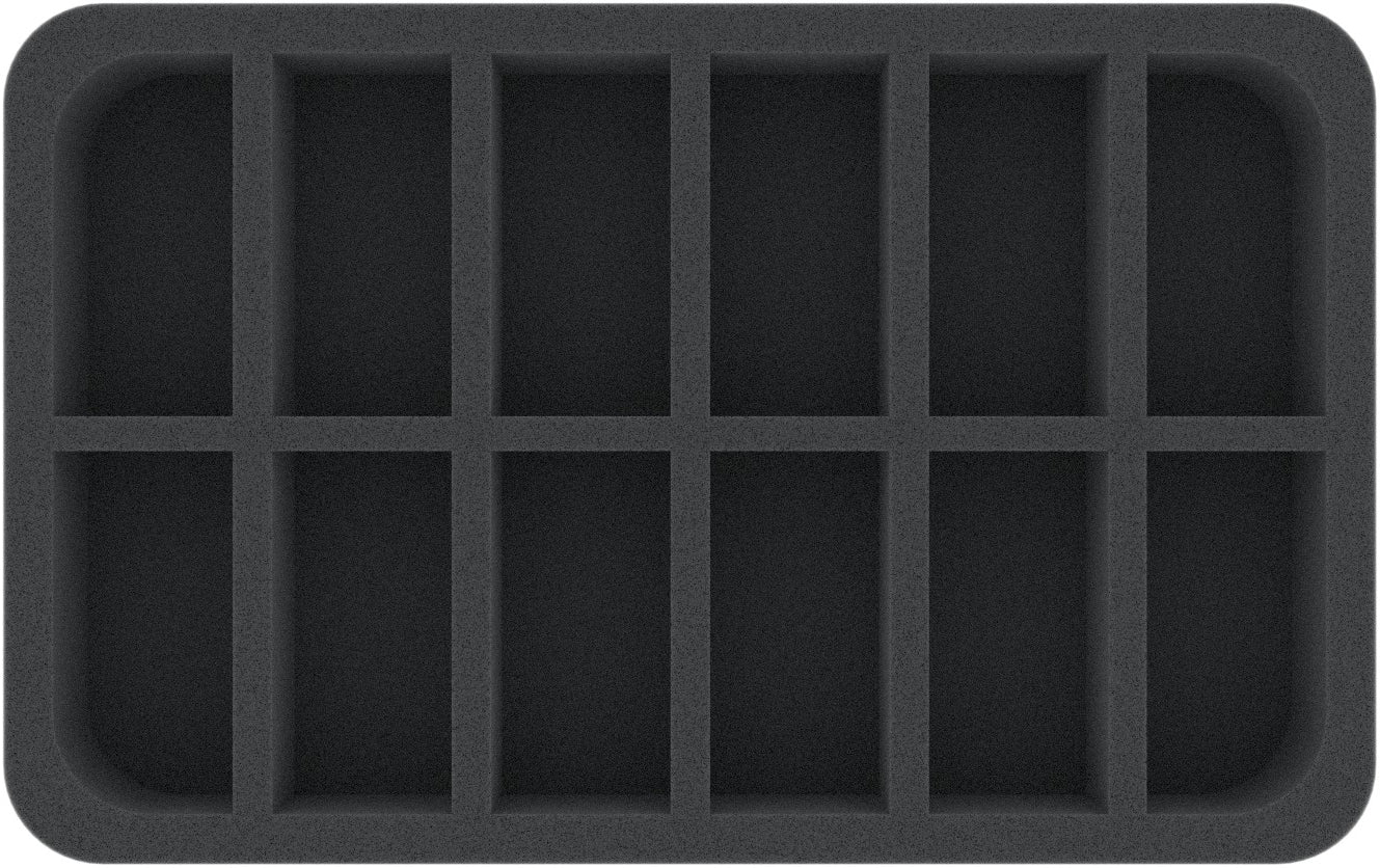 Auf dieser Feldherr Schaumstoffeinlage hast du Platz für bis zu 12 Miniaturen deiner Armee. Das Insert eignet sich zum Beispiel besonders gut zum Aufbewahren von Daemonetten ohne ausladende Figuren (Bannerträger, Musiker).