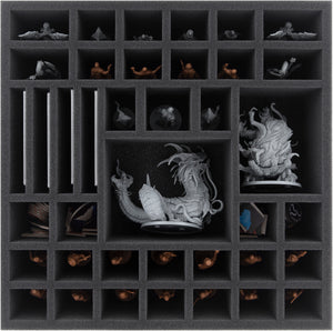 Optimierte Aufbewahrung für Cthulhu: Death May Die sorgt dafür, dass Minis, Karten, Marker und Modular-Pläne sicher sortiert, geschützt und schnell spielbereit sind – zu Hause wie auch für den Transport zu Spieleabenden.