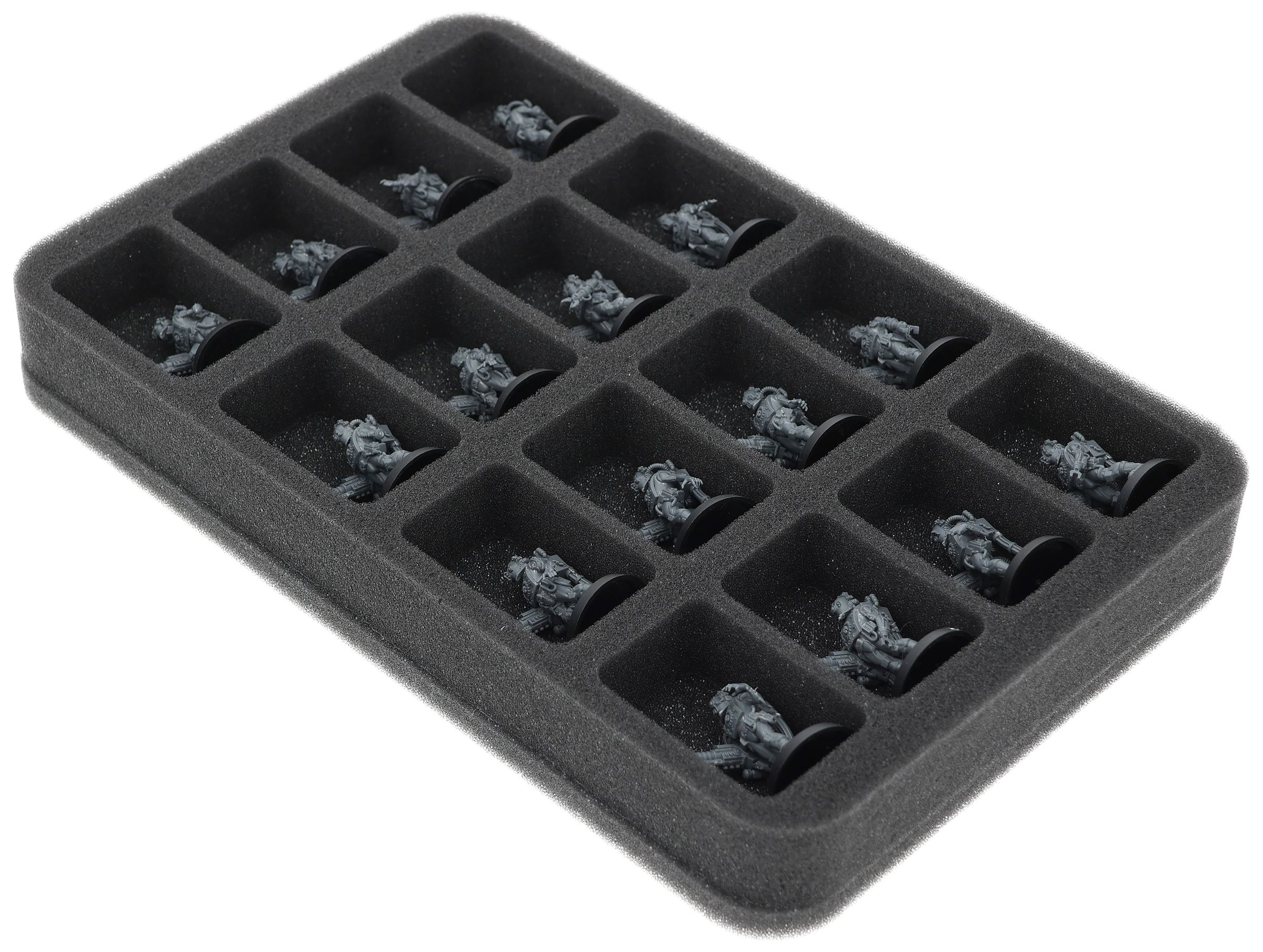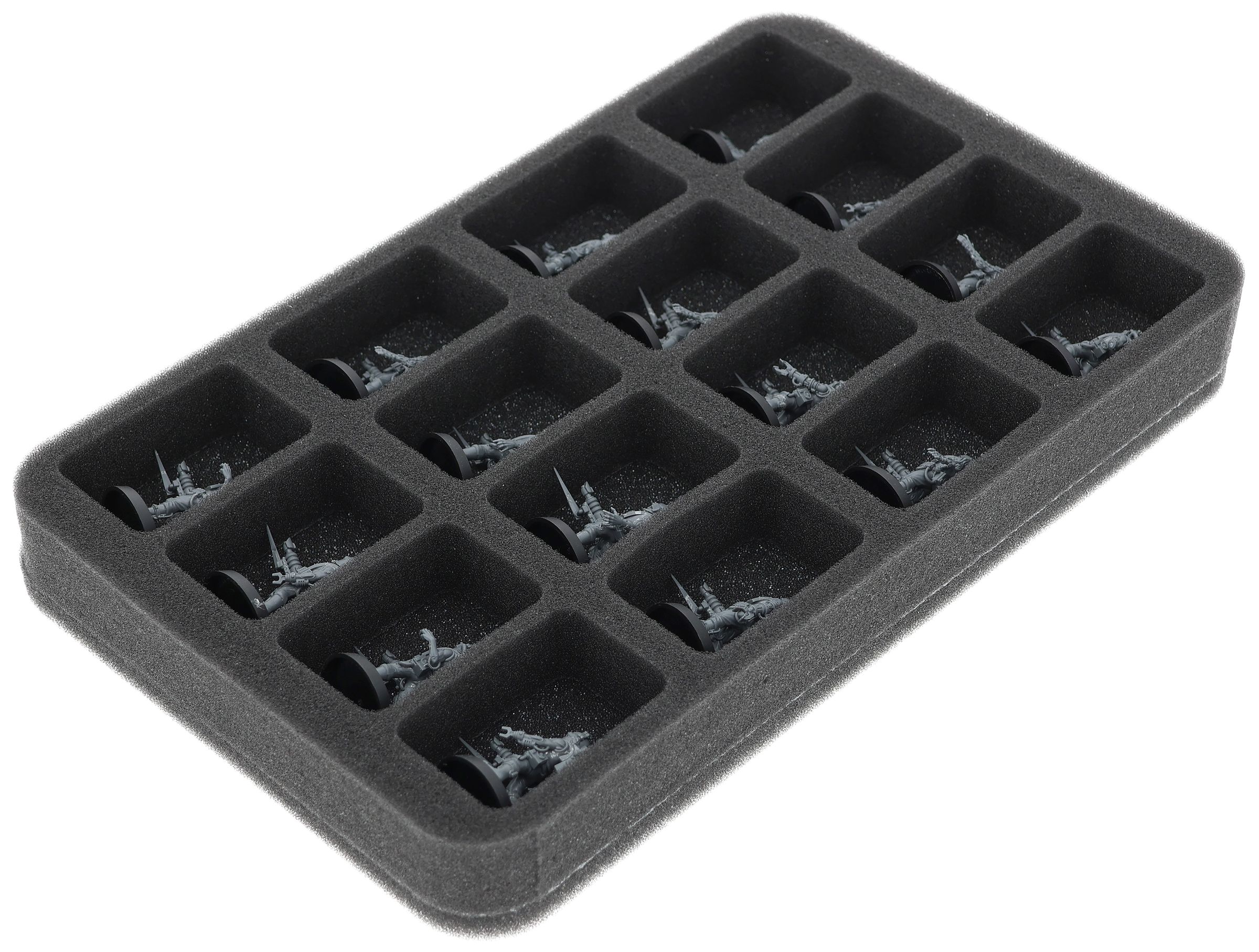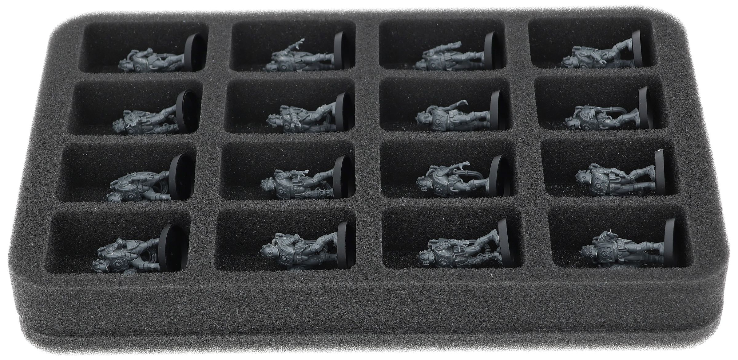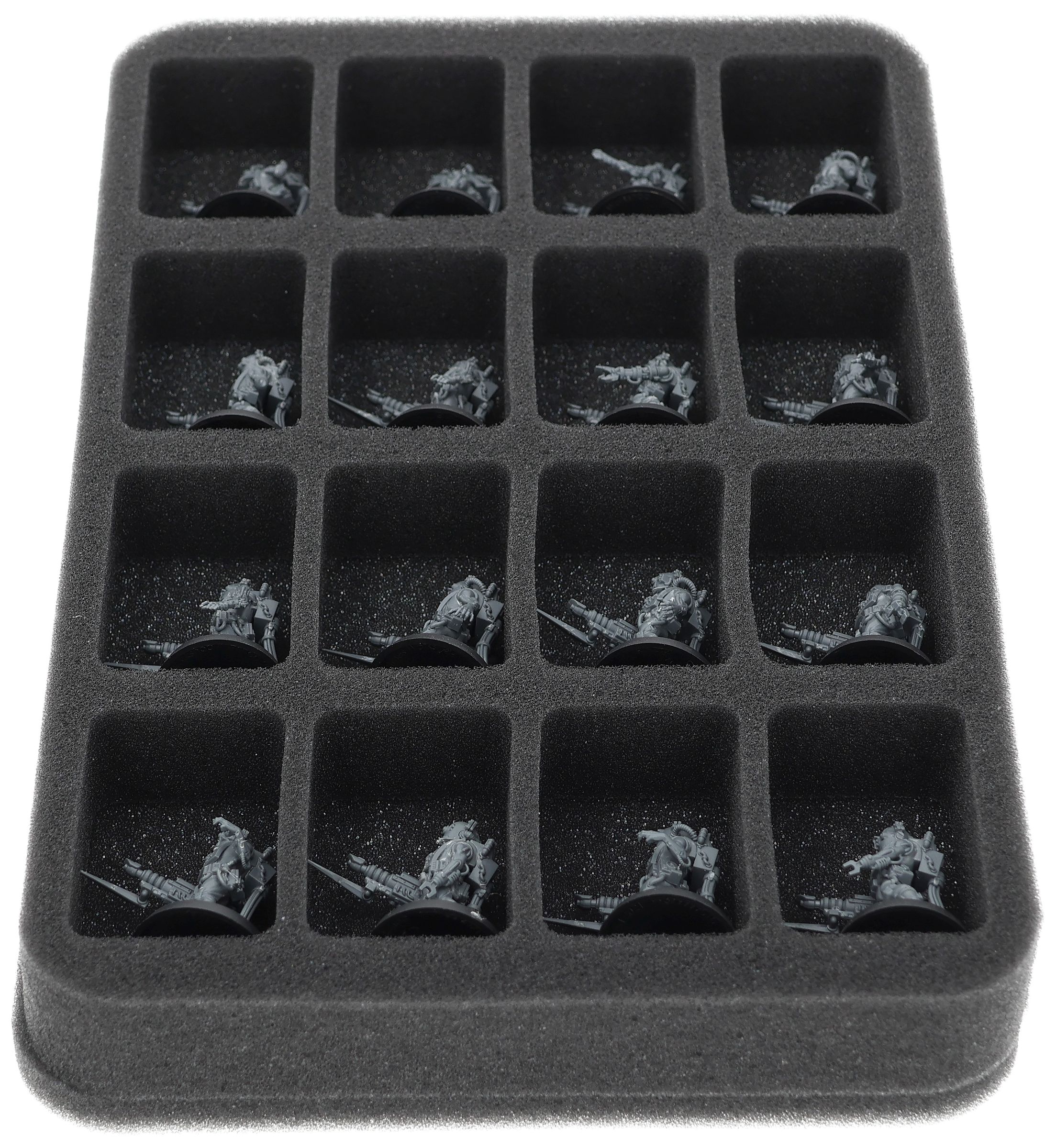 Auf dieser Feldherr Schaumstoffeinlage hast du Platz für bis zu 16 Miniaturen deiner Armee. Das Insert eignet sich zum Beispiel besonders gut zum Aufbewahren der Adsecularis-Techknechte und Modellen mit ähnlichen Abmessungen.