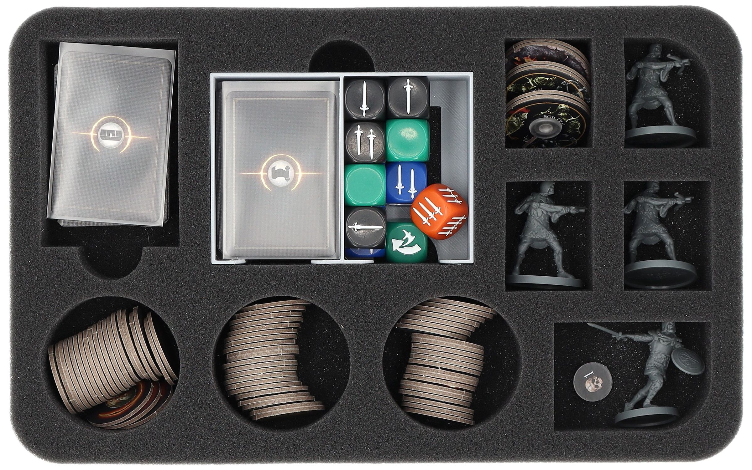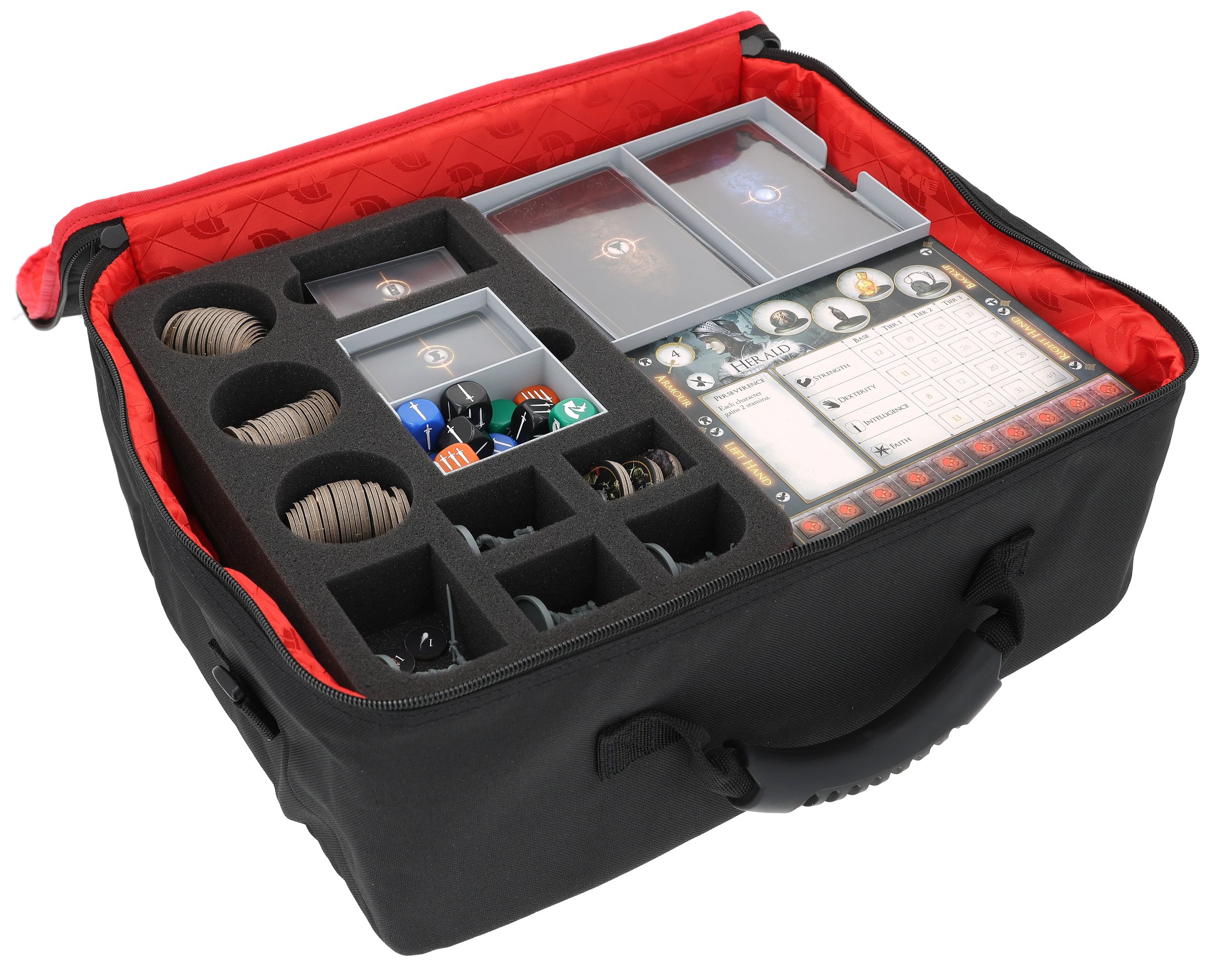 Damit du jederzeit bereit und bestens vorbereitet bist, für dein nächstes Abenteuer in Dark Souls: The Sunless City, bietet diese Feldherr Medium Plus Tasche eine durchdachte und komfortable Aufbewahrungslösung. Mit passgenauen Schaumstoffeinlagen und 3D-gedruckten Kartenhaltern sorgt sie für Ordnung und Schutz deiner Miniaturen und des gesamten Spielmaterials.
