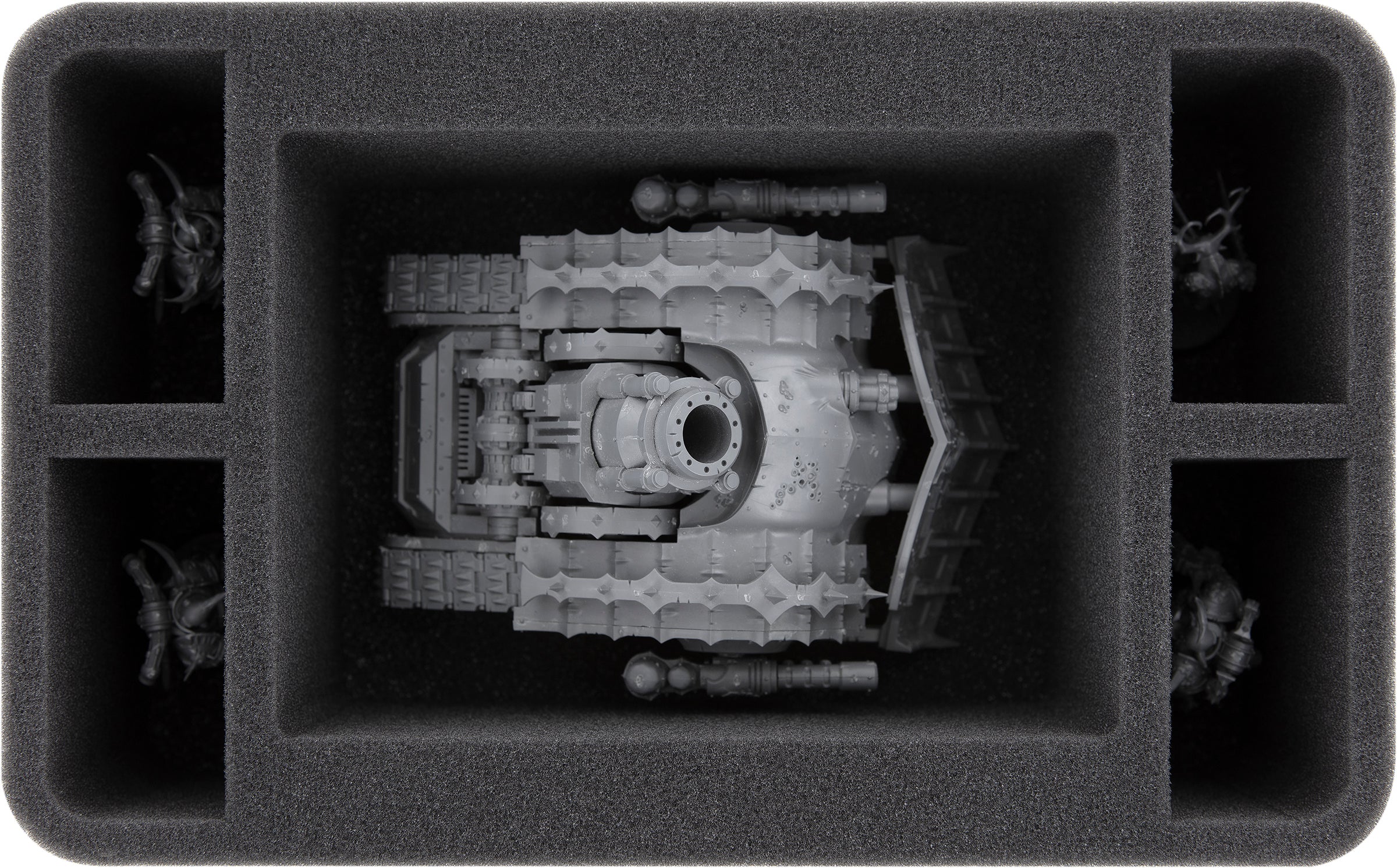 Doch selbst ein mit Rammklingen und massiven Platten bestückter Belagerungspanzer wie der Plagueburst Crawler hat jenseits der Schlachtfelder auch empfindliche Stellen. Deshalb haben wir hier diese passende Feldherr Schaumstoffeinlage zum Schutz deiner Miniatur.