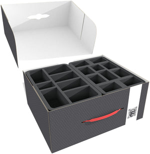 Mit flexiblen Einsätzen und stapelbaren Boxen bleibt Ihre Deathwatch-Sammlung auch mit neuen Einheiten, Modellen oder Kampagnenbüchern sauber strukturiert und gut geschützt.