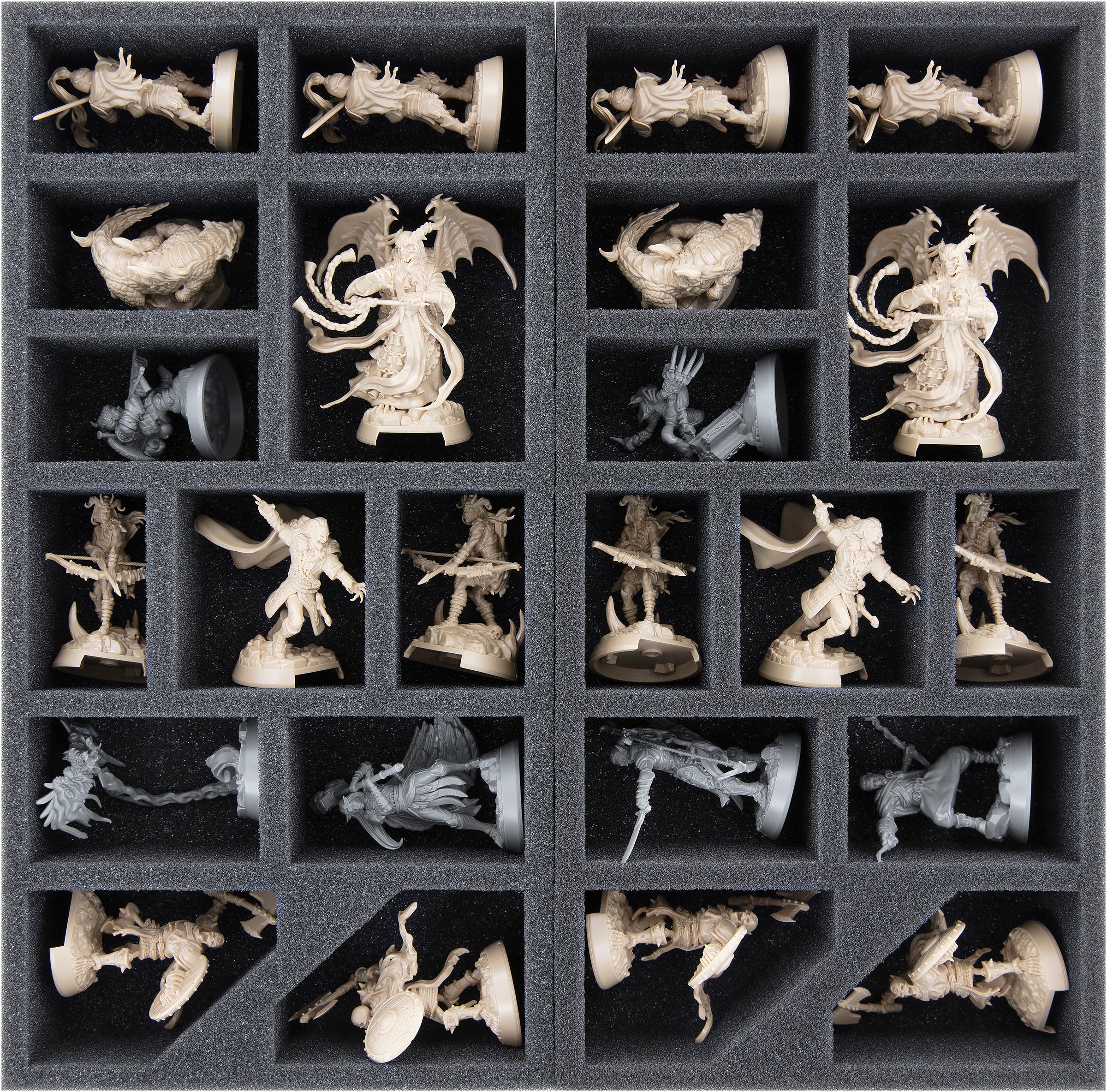 - 2 Schaumstoffeinlagen mit jeweils 12 Fächern für Gegner- und Heldenminiaturen (BEMFKX050BO)