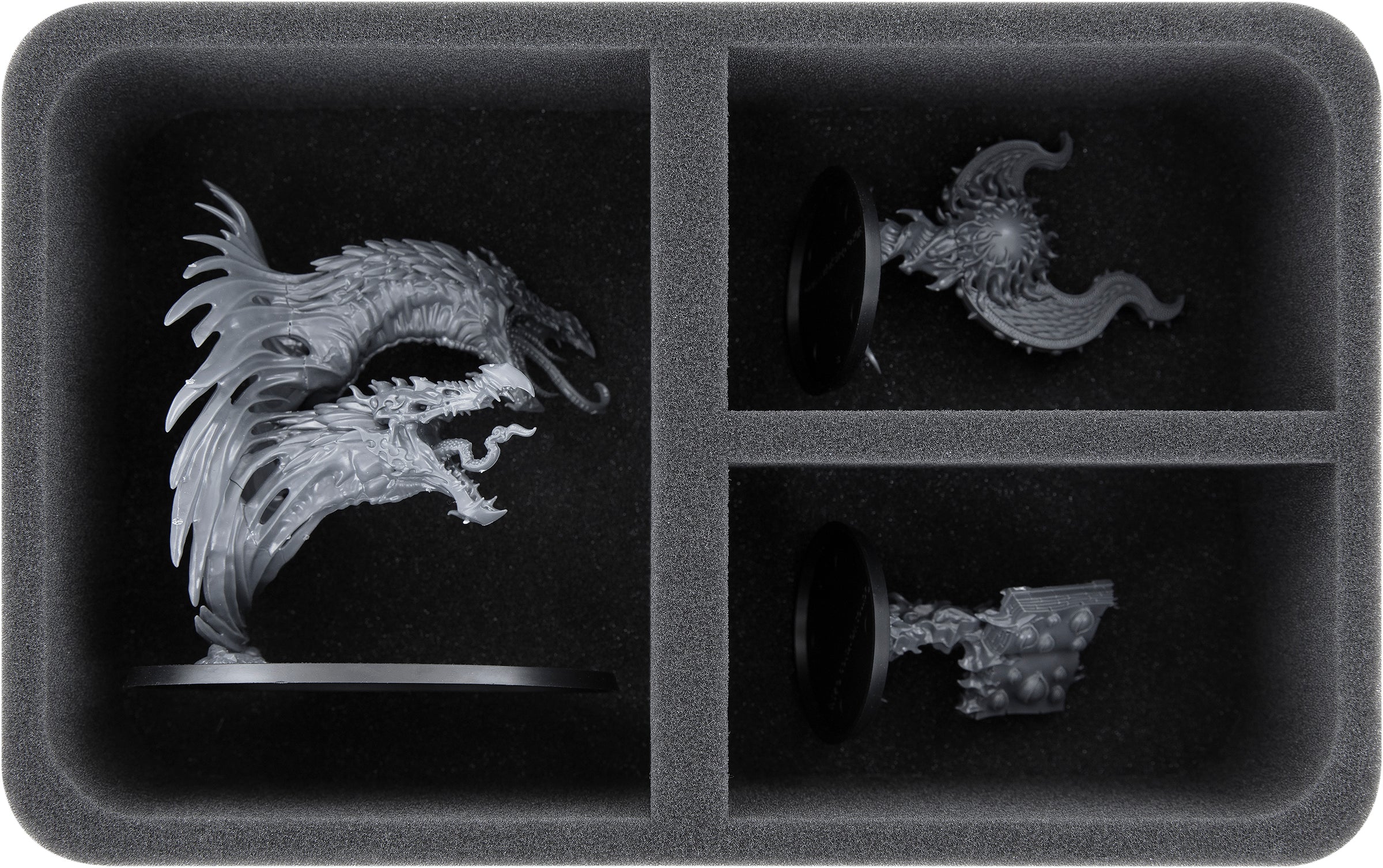So gewaltige Magie zu kontrollieren kann sehr leicht schief gehen, damit dir dabei keine feinen Details abbrechen, gibt es diese maßgeschneiderte Feldherr Schaumstoffeinlage zur sicheren Aufbewahrung deiner Modelle.